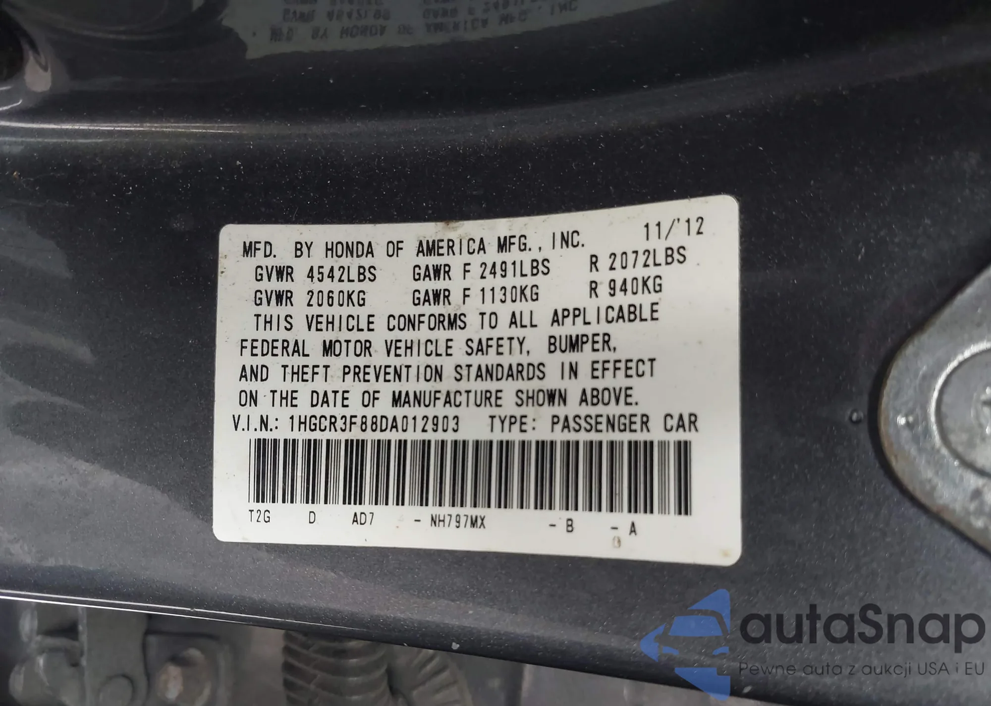 VIN: 1HGCR3F88DA012903