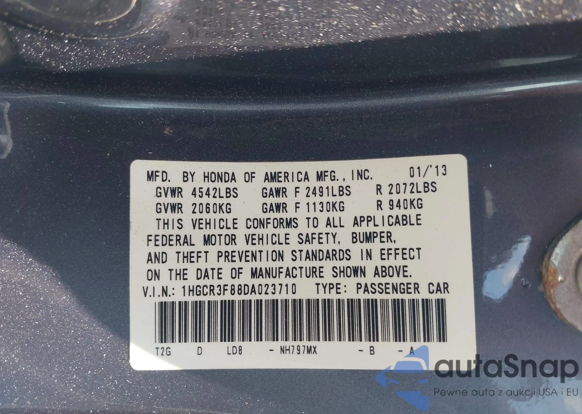 VIN: 1HGCR3F88DA023710