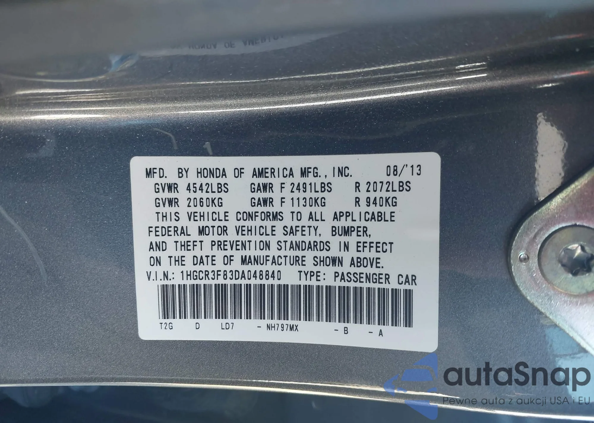 VIN: 1HGCR3F83DA048840