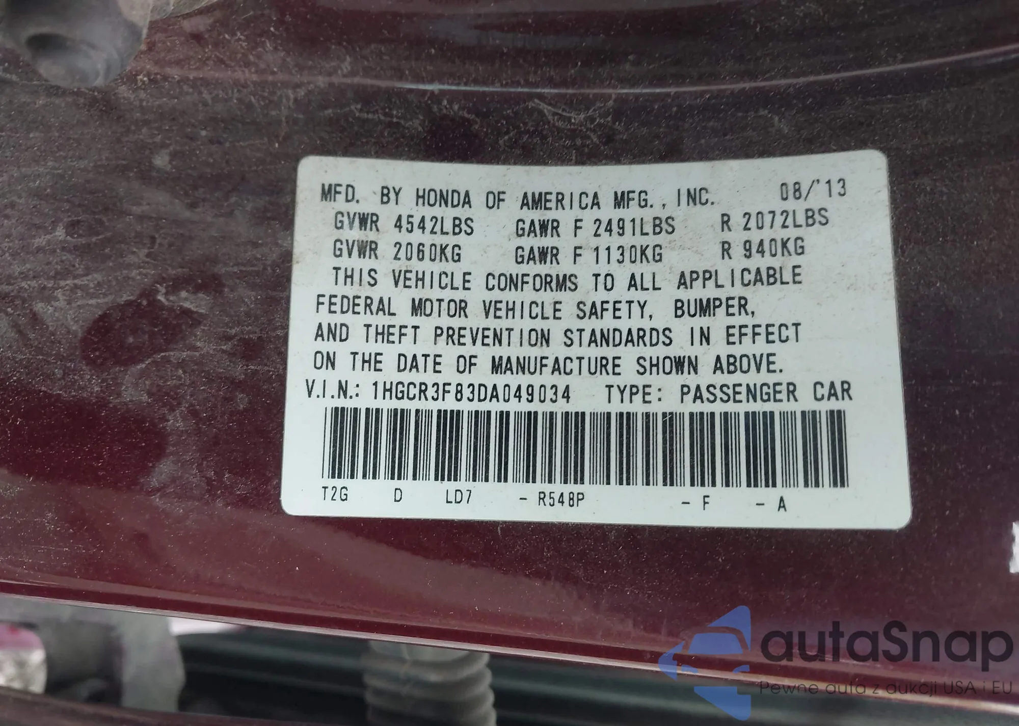 VIN: 1HGCR3F83DA049034