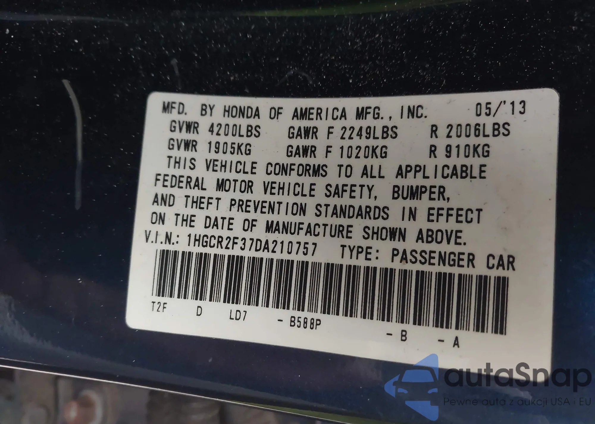 VIN: 1HGCR2F37DA210757