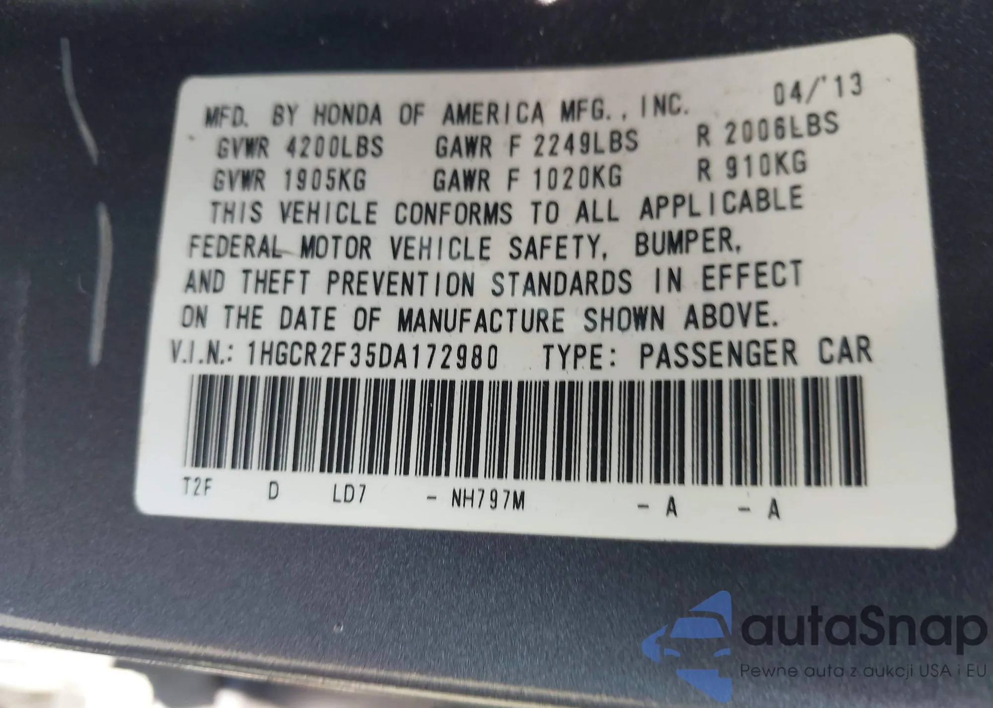 VIN: 1HGCR2F35DA172980
