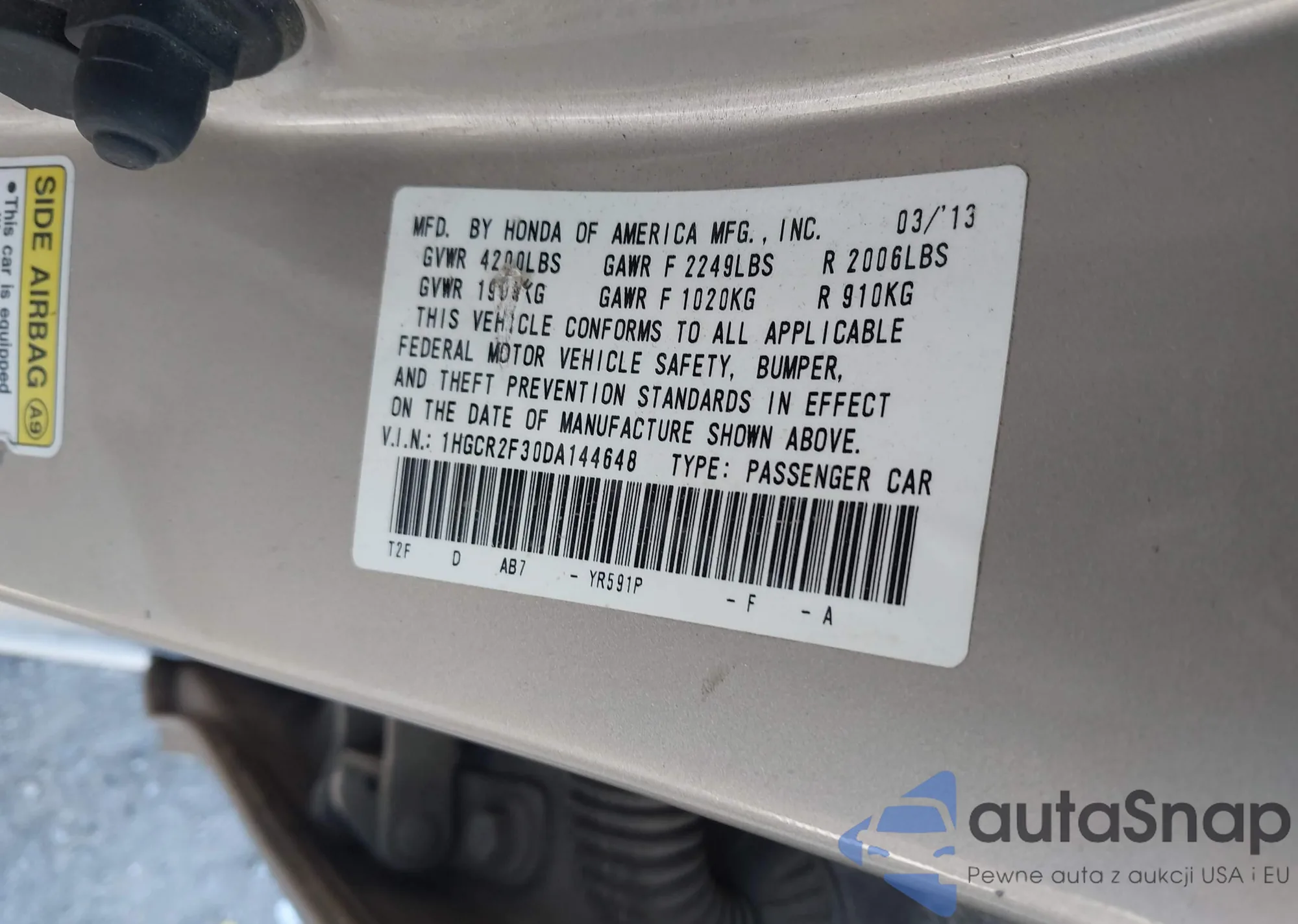 VIN: 1HGCR2F30DA144648