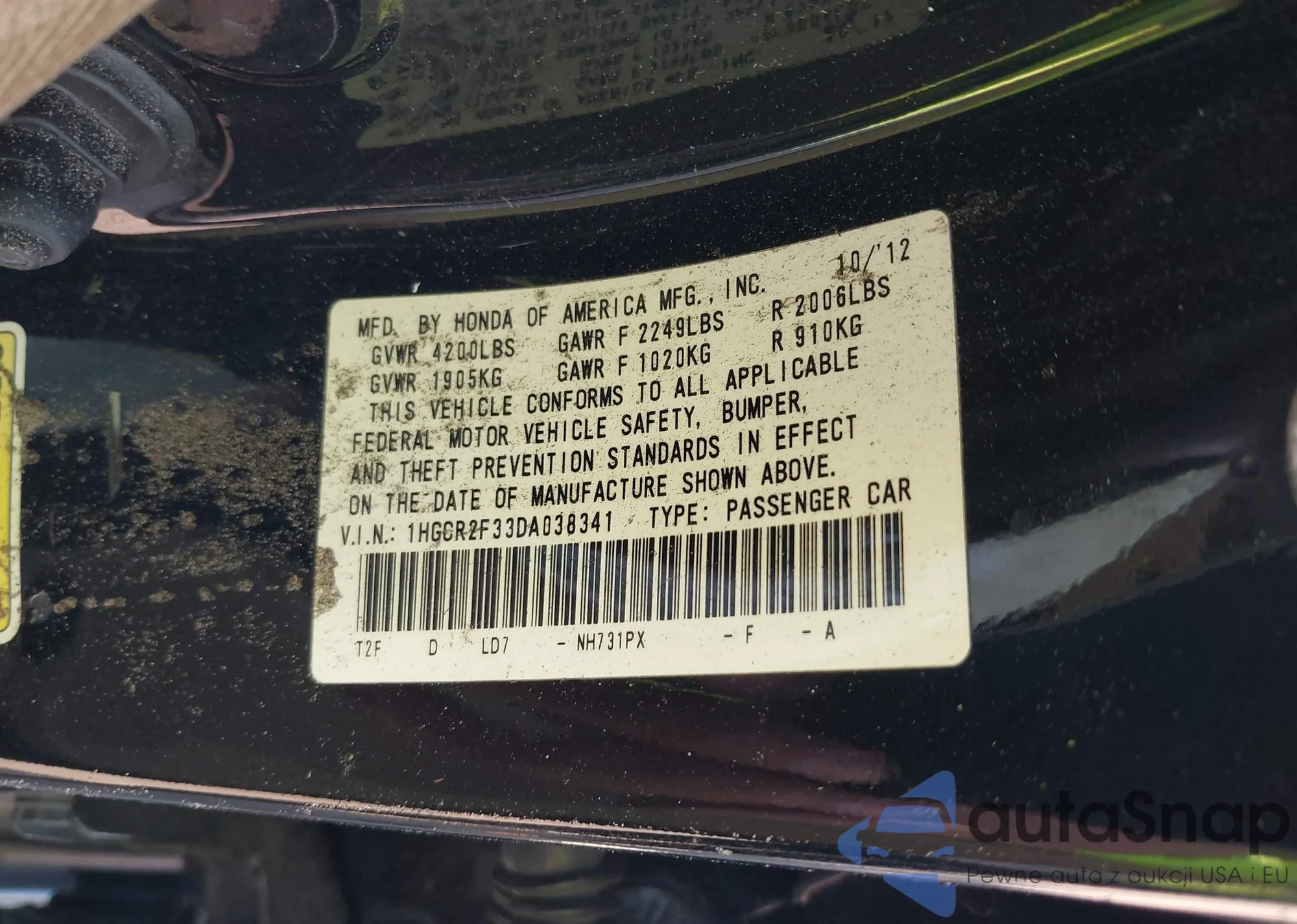 Samochód Honda Accord 2013 (VIN 1HGCR2F33DA038341) nie był wcześniej licytowany. Dokumenty są czyste, przebieg odpowiada lub jest niższy niż średnia rynku. Sprzedaje go firma ubezpieczeniowa – polecamy zakup. Dostawa do portu zajmie ok. 6–8 tygodni.