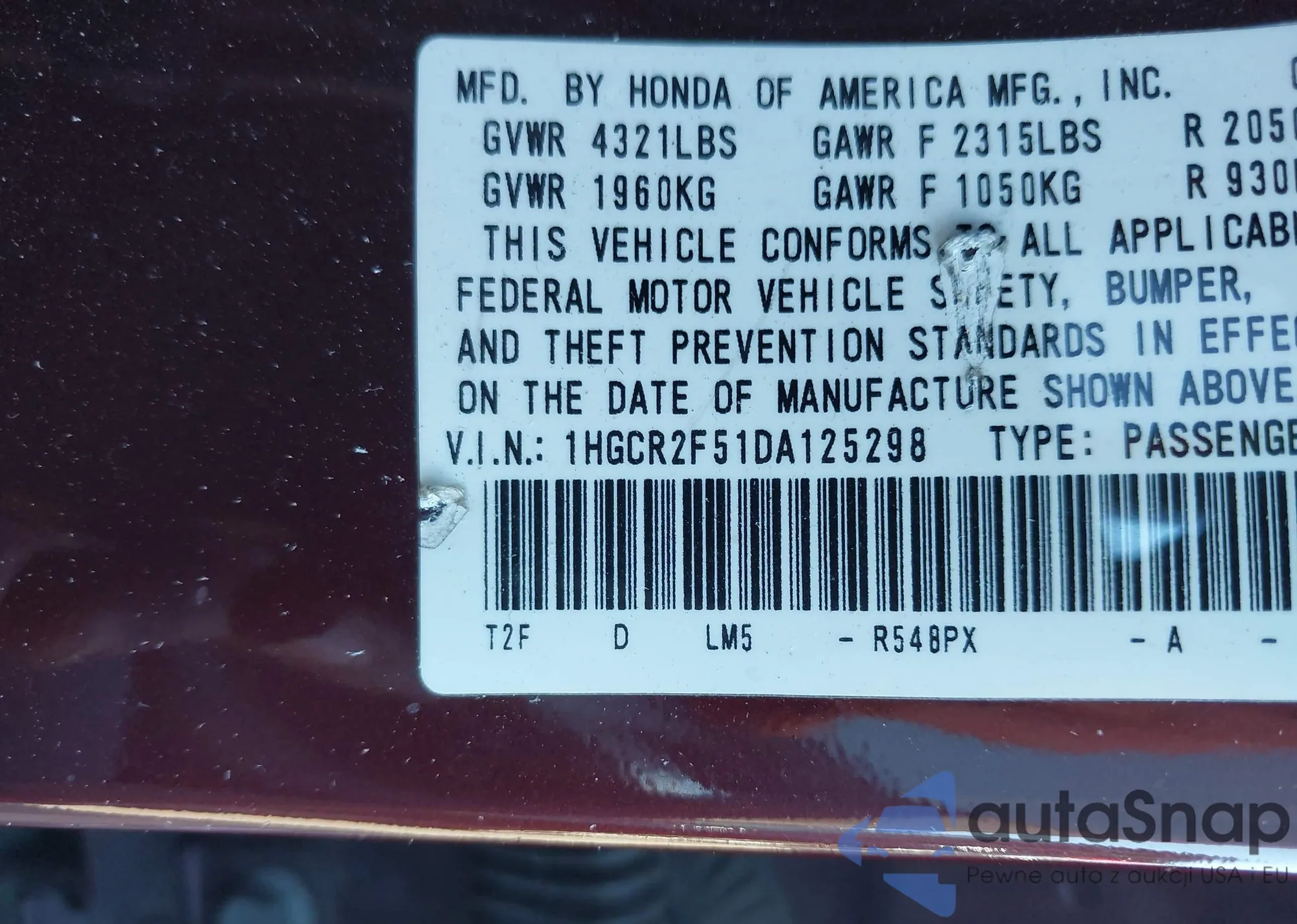 VIN: 1HGCR2F51DA125298