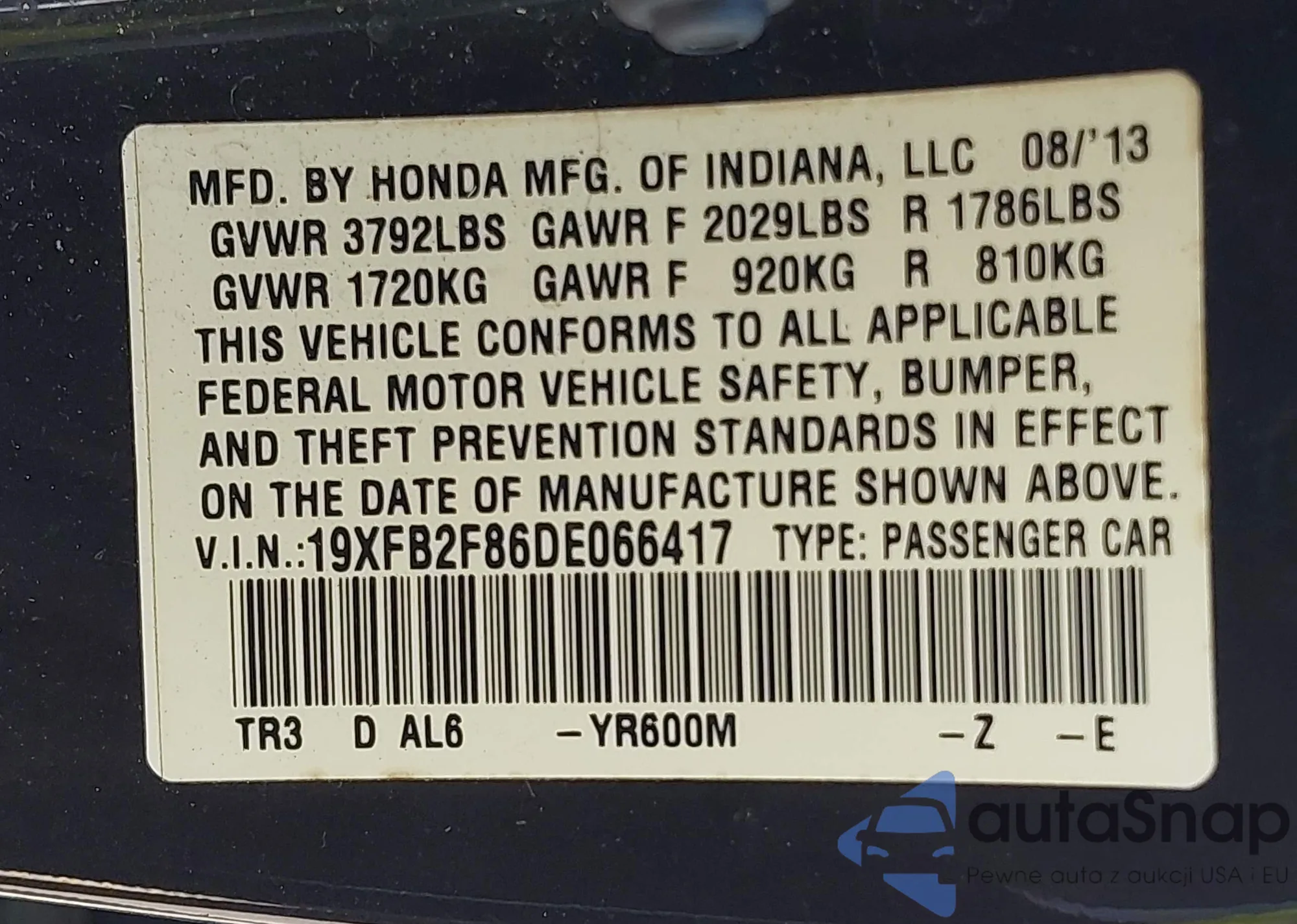 VIN: 19XFB2F86DE066417