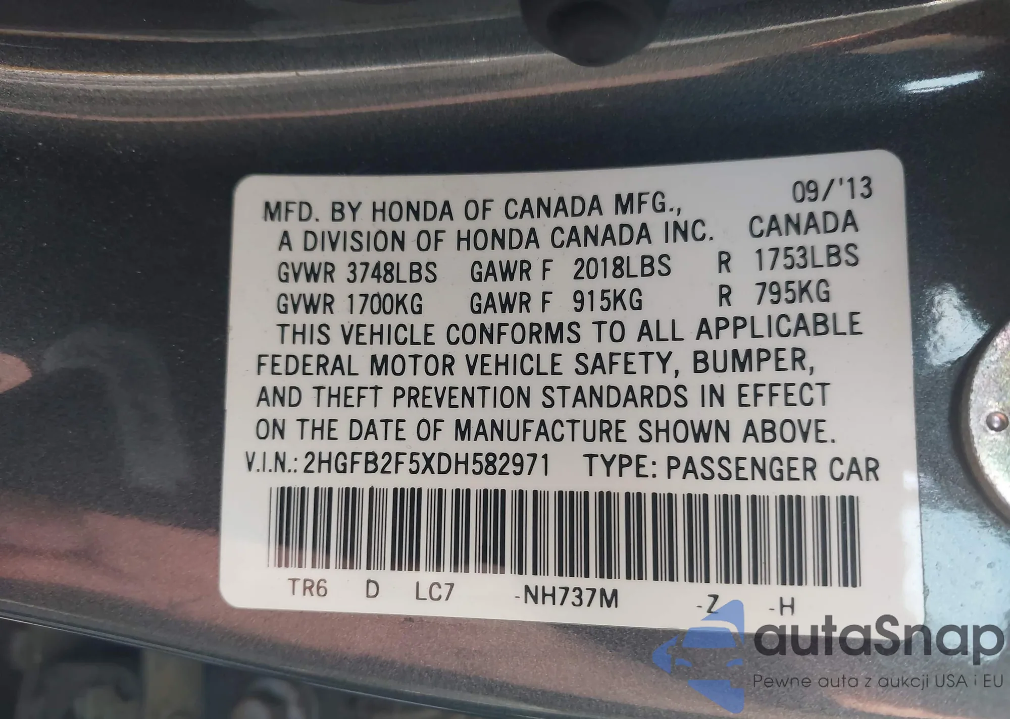 VIN: 2HGFB2F5XDH582971