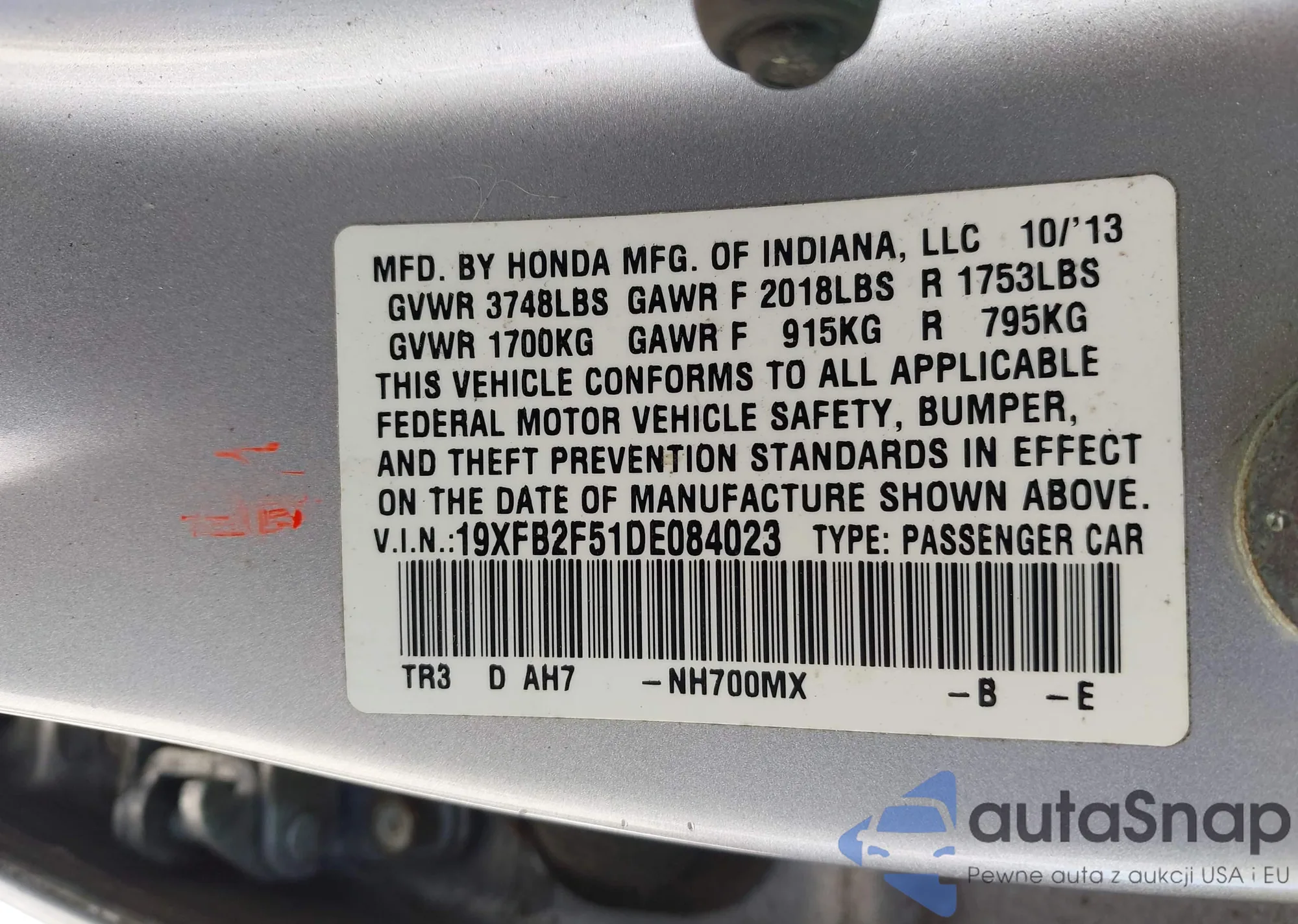VIN: 19XFB2F51DE084023