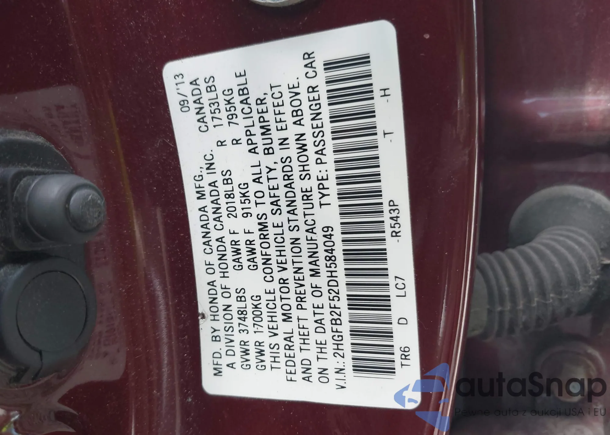 VIN: 2HGFB2F52DH584049