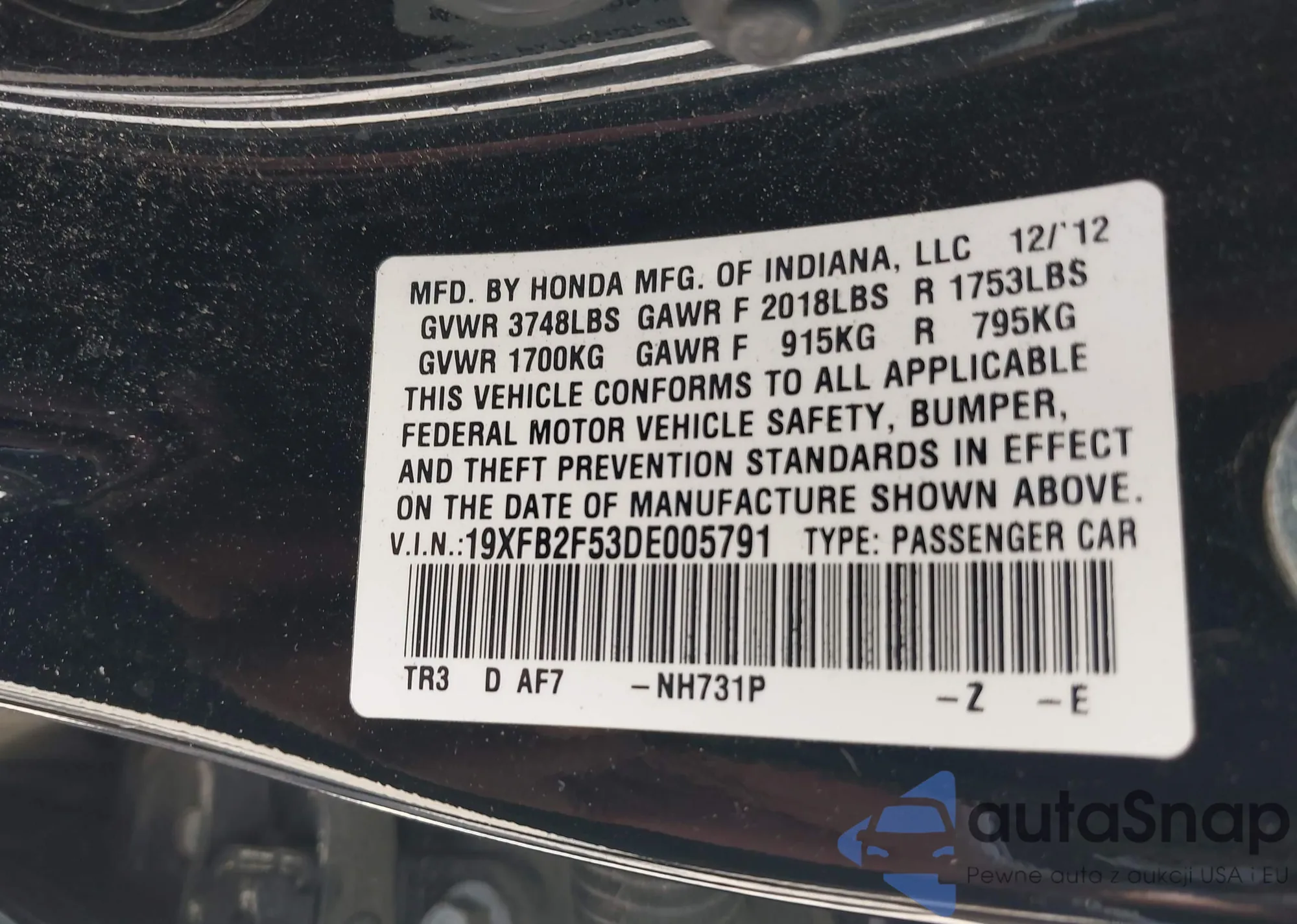 VIN: 19XFB2F53DE005791