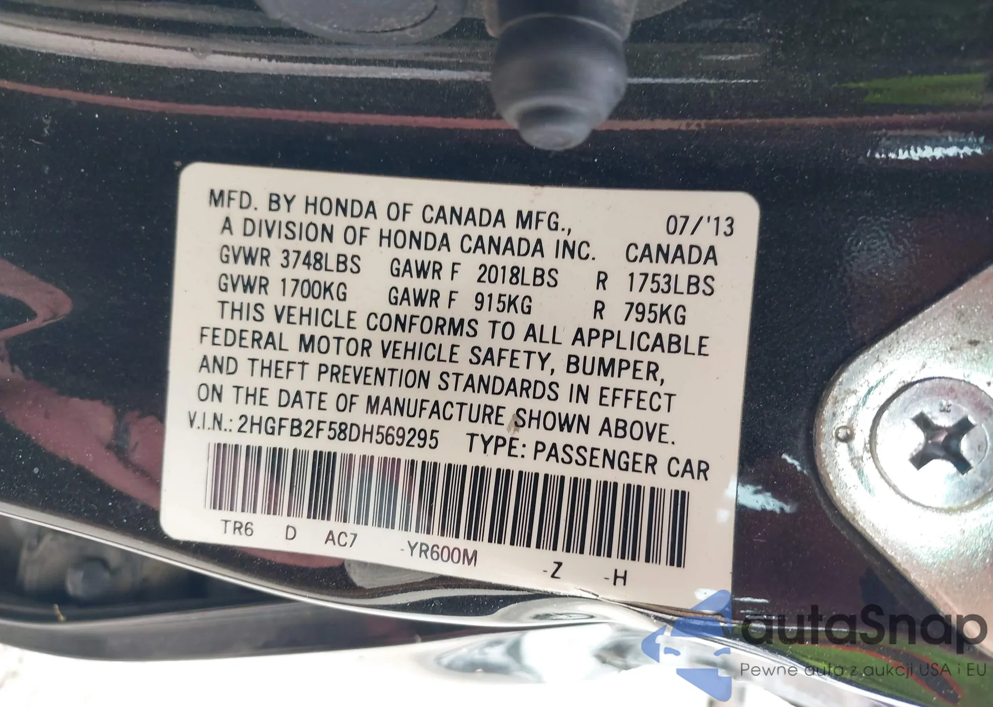 VIN: 2HGFB2F58DH569295