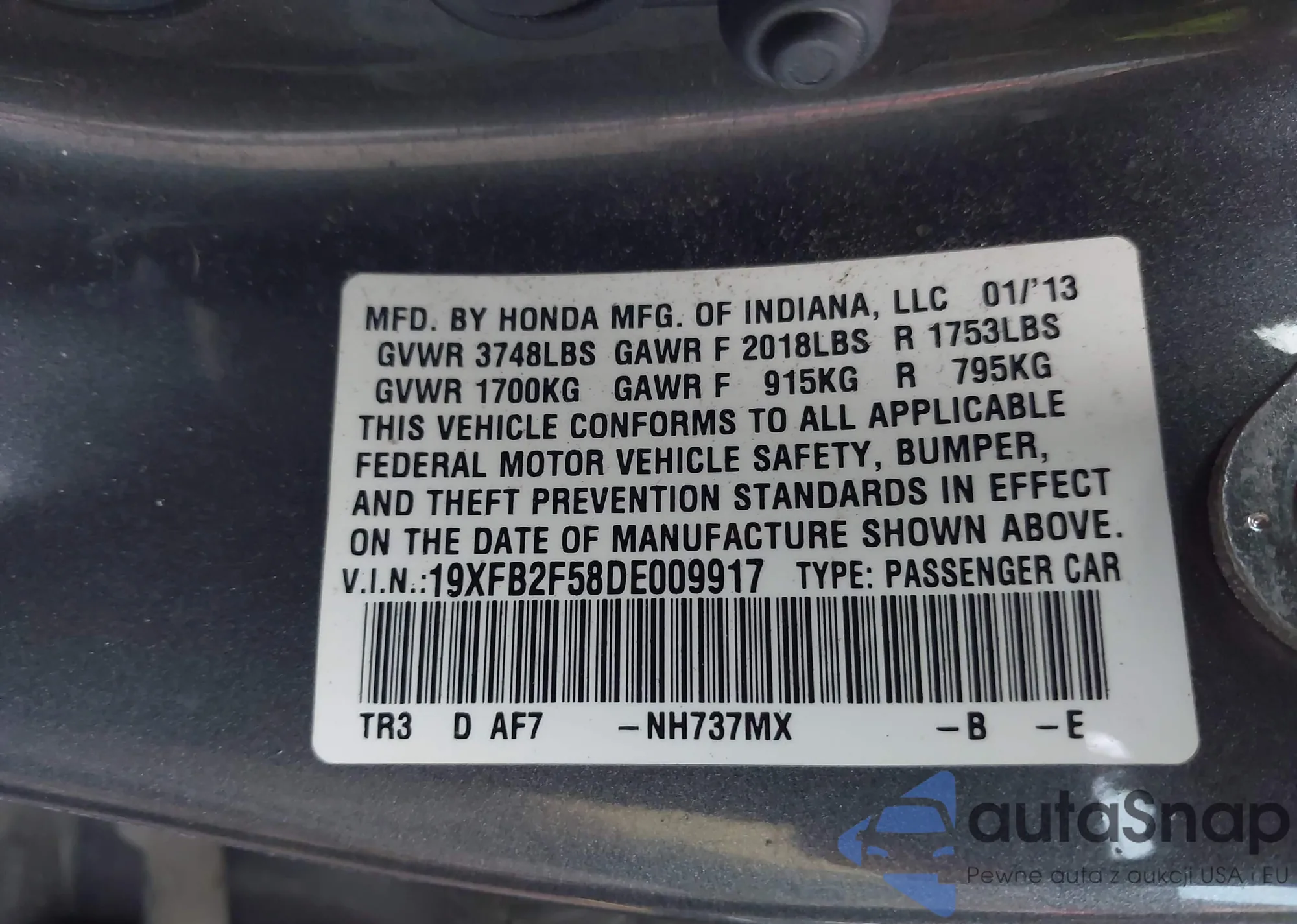 VIN: 19XFB2F58DE009917