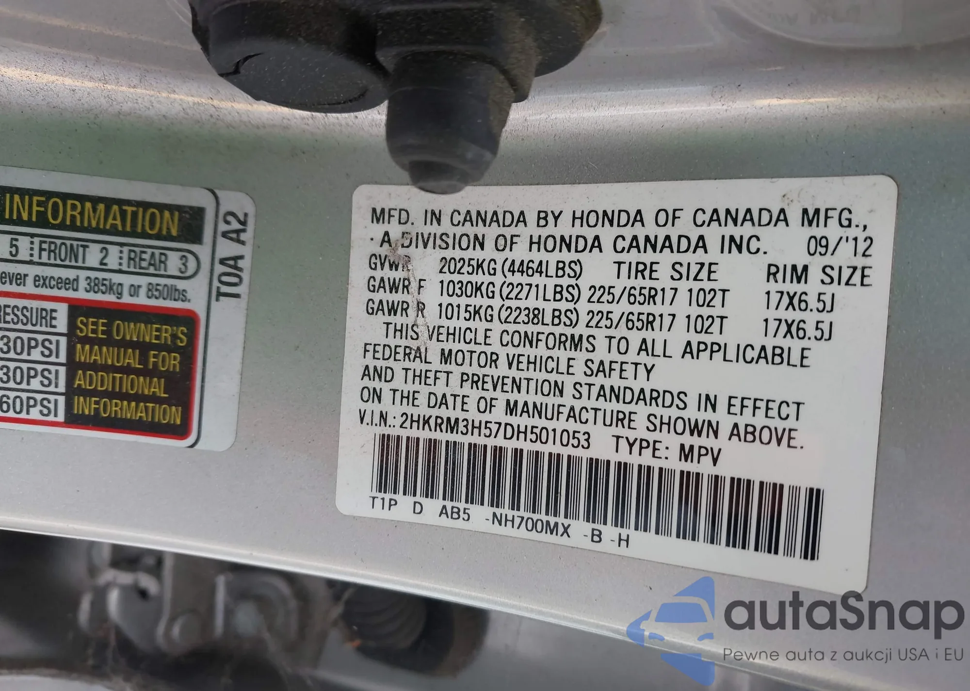 VIN: 2HKRM3H57DH501053