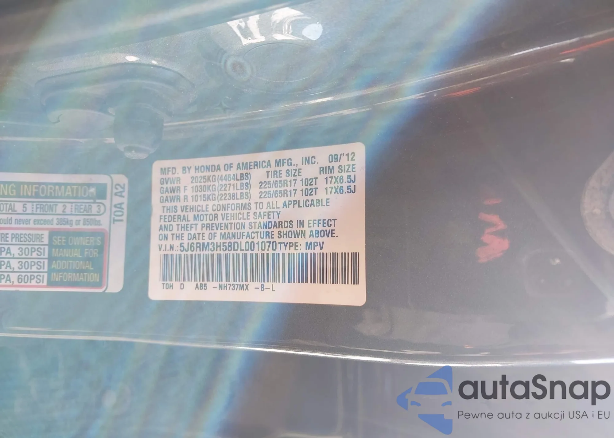 Samochód Honda CR-V 2013 (VIN 5J6RM3H58DL001070) nie był wcześniej licytowany. Dokumenty są czyste, przebieg odpowiada lub jest niższy niż średnia rynku. Sprzedaje go firma ubezpieczeniowa – polecamy zakup. Dostawa do portu zajmie ok. 6–8 tygodni.