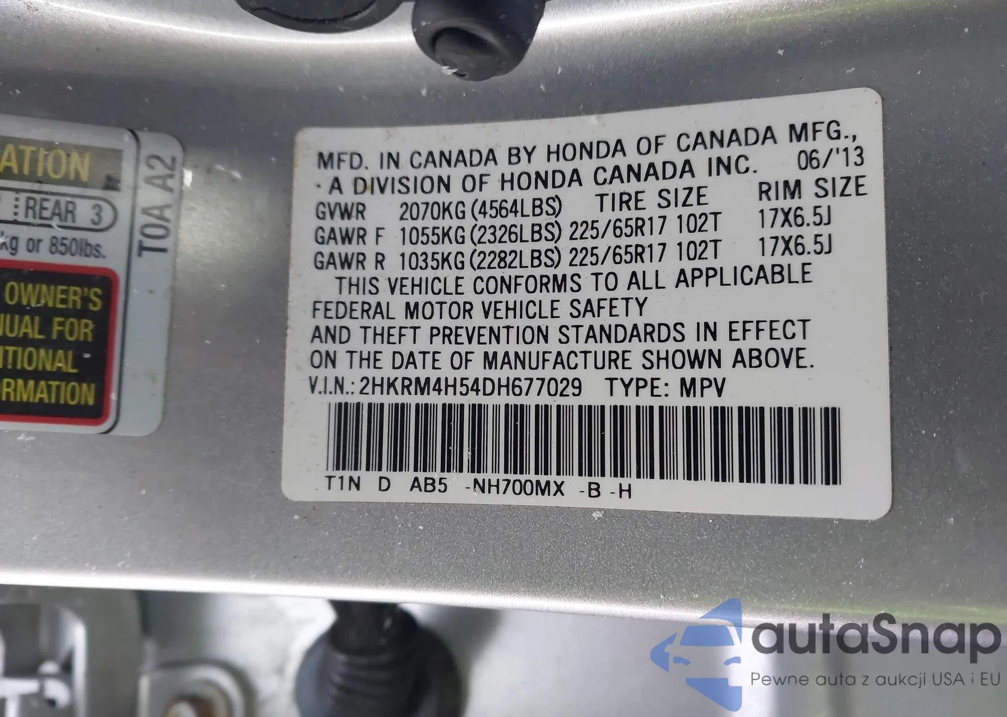VIN: 2HKRM4H54DH677029