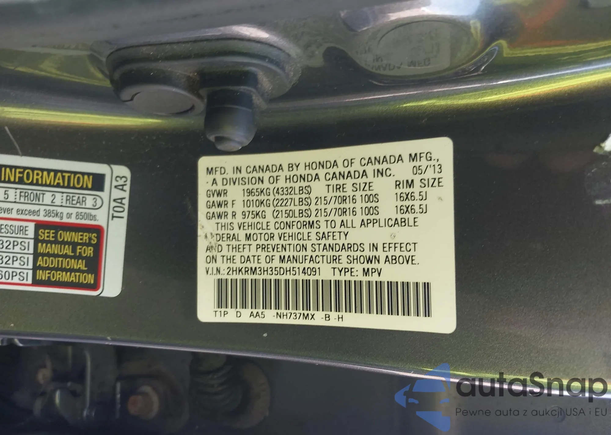 Samochód Honda CR-V 2013 (VIN 2HKRM3H35DH514091) nie był wcześniej licytowany. Dokumenty są czyste, przebieg odpowiada lub jest niższy niż średnia rynku. Sprzedaje go firma ubezpieczeniowa – polecamy zakup. Dostawa do portu zajmie ok. 6–8 tygodni.