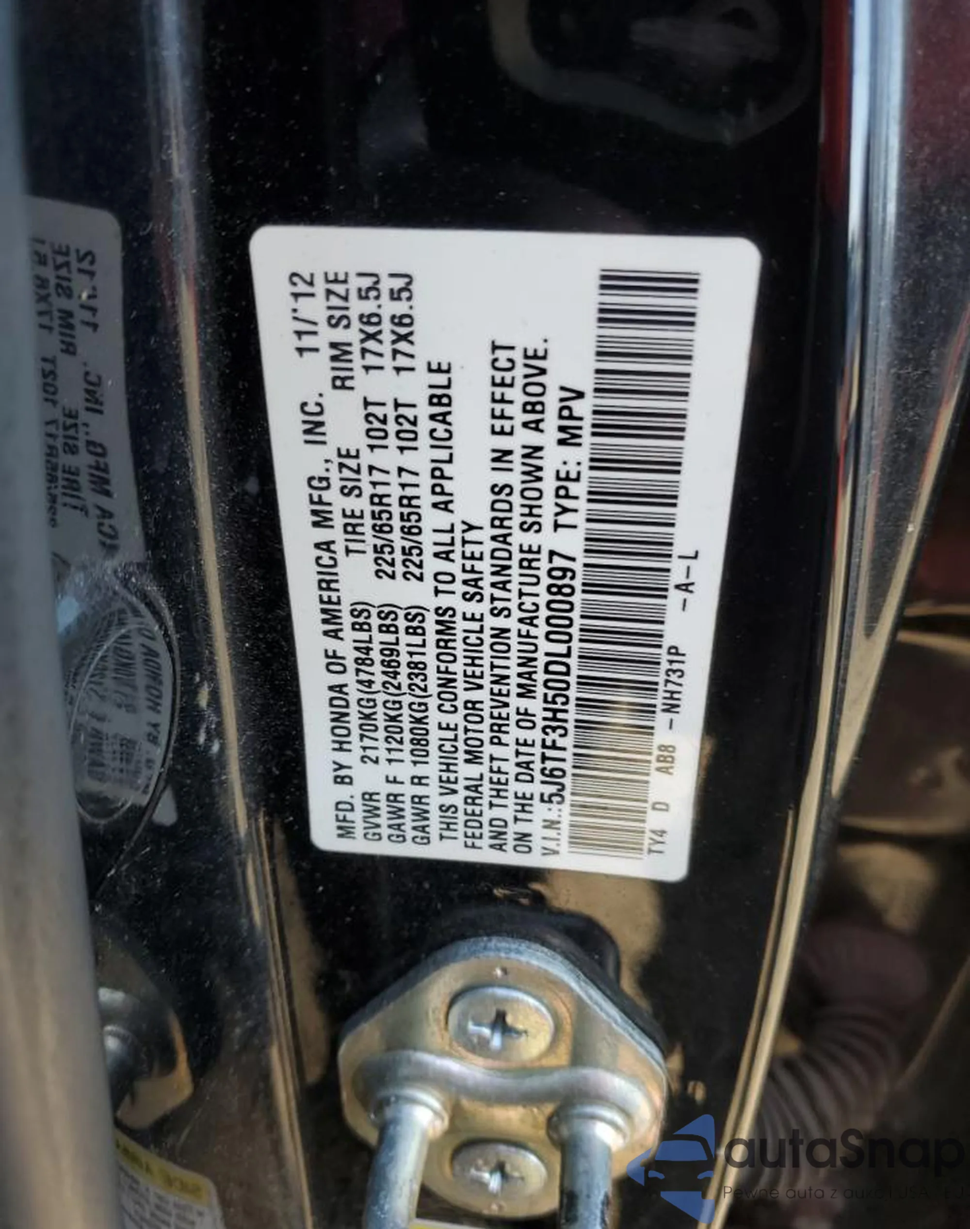 VIN: 5J6TF3H50DL000897
