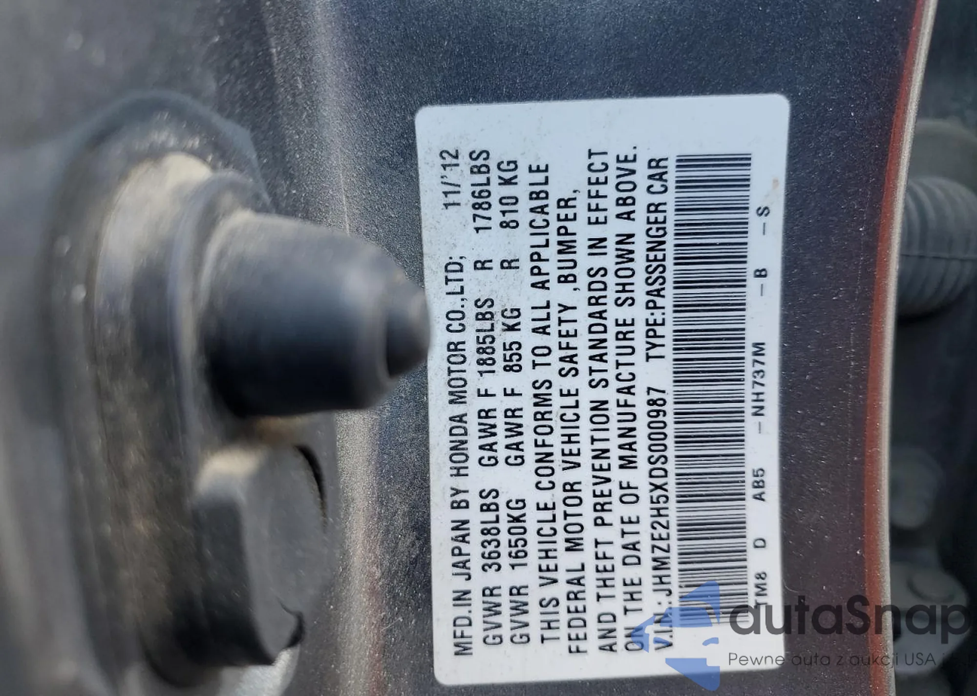 VIN: JHMZE2H5XDS000987