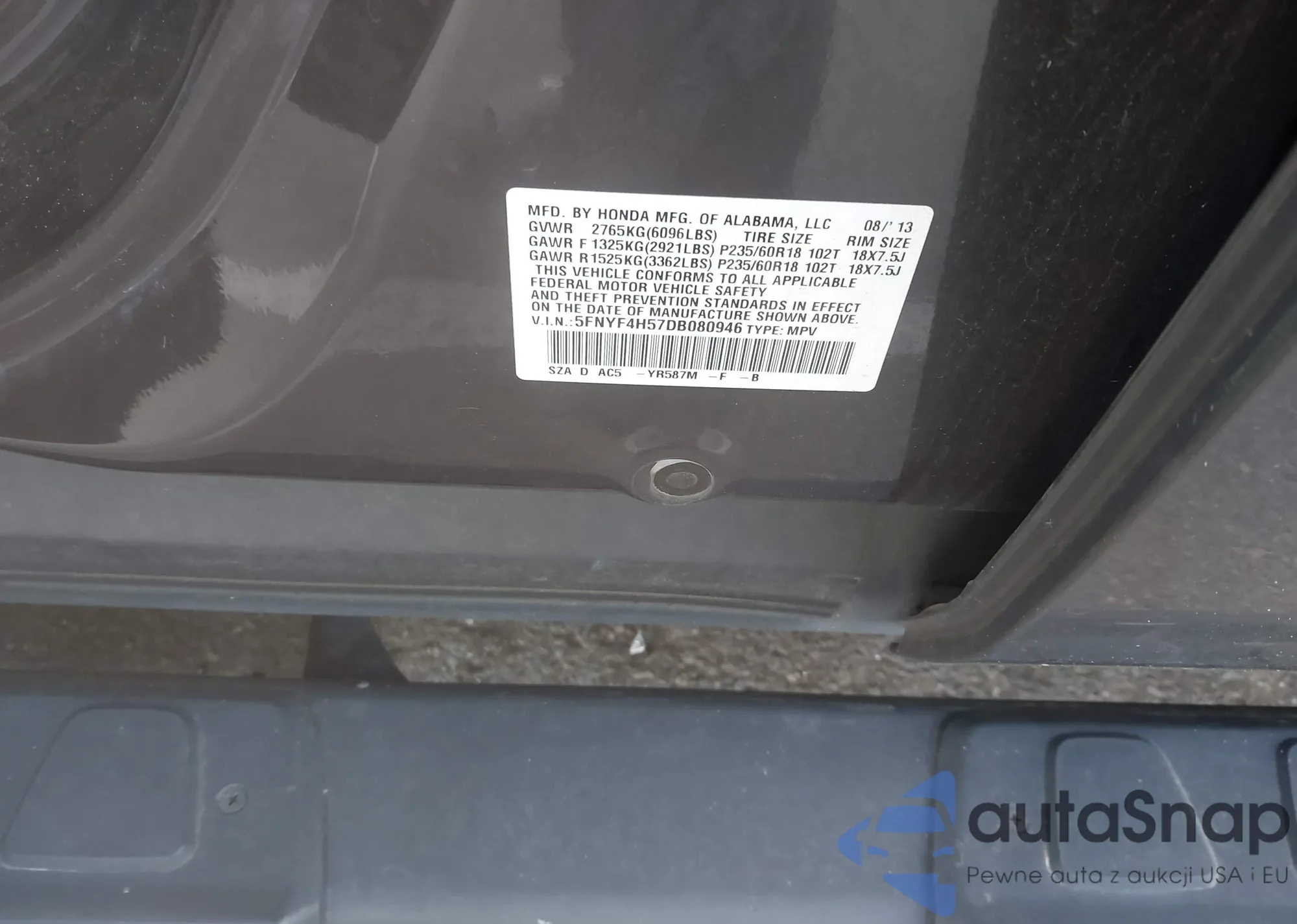 VIN: 5FNYF4H57DB080946