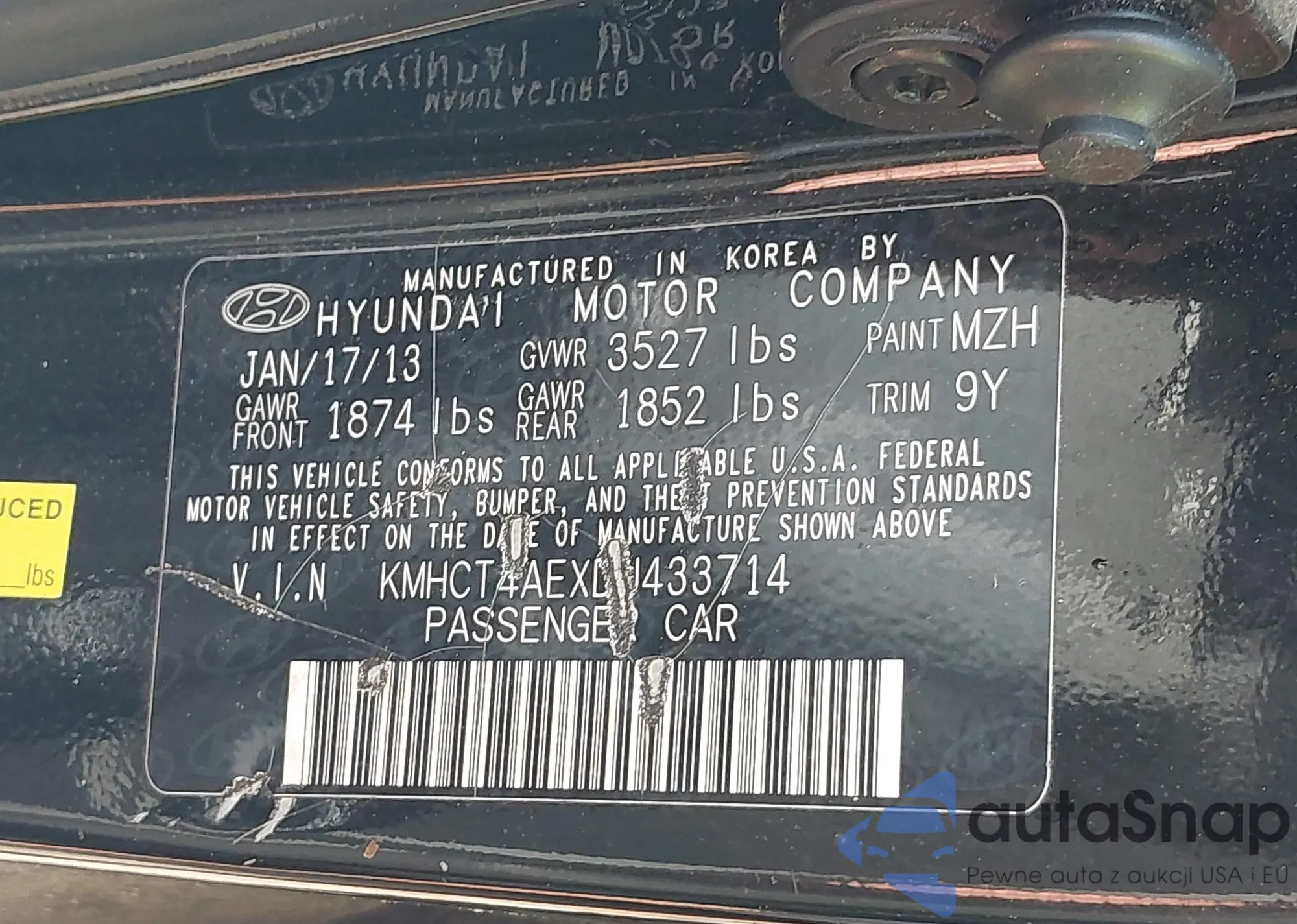 VIN: KMHCT4AEXDU433714