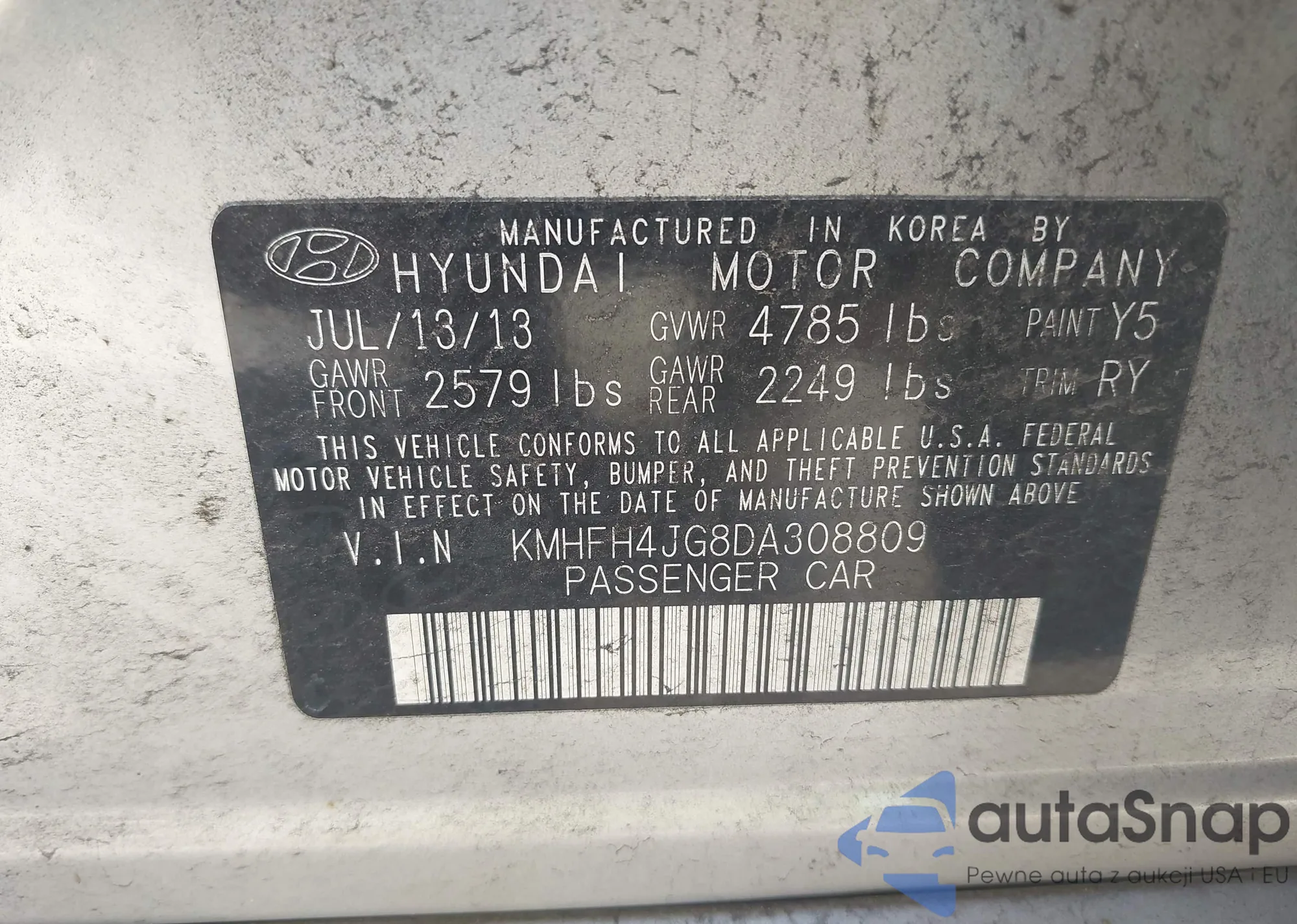 VIN: KMHFH4JG8DA308809
