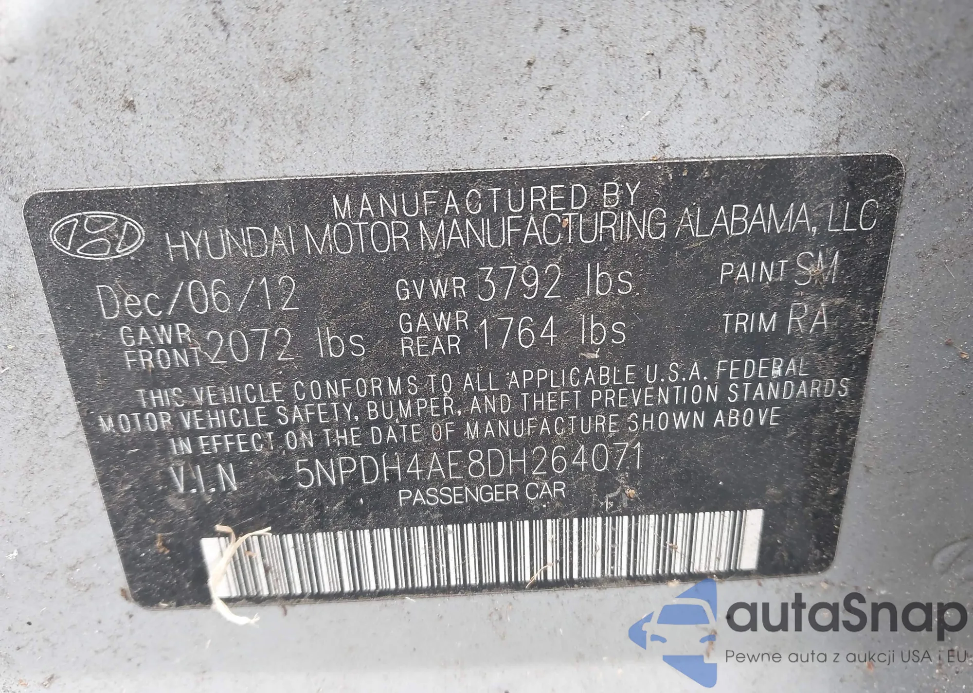 VIN: 5NPDH4AE8DH264071