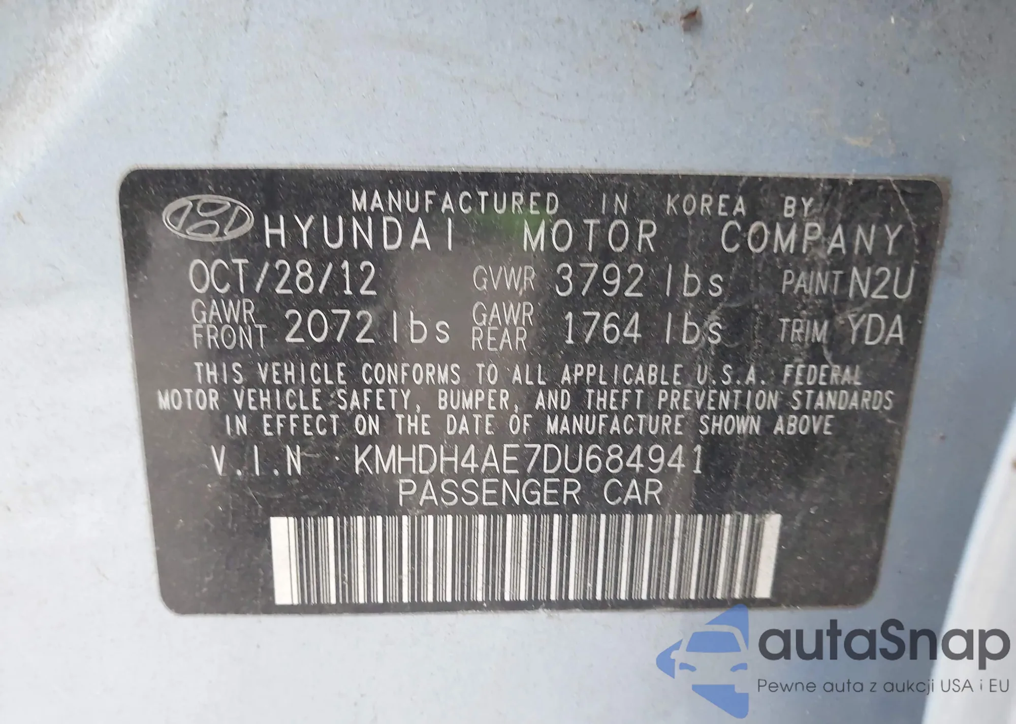 VIN: KMHDH4AE7DU684941