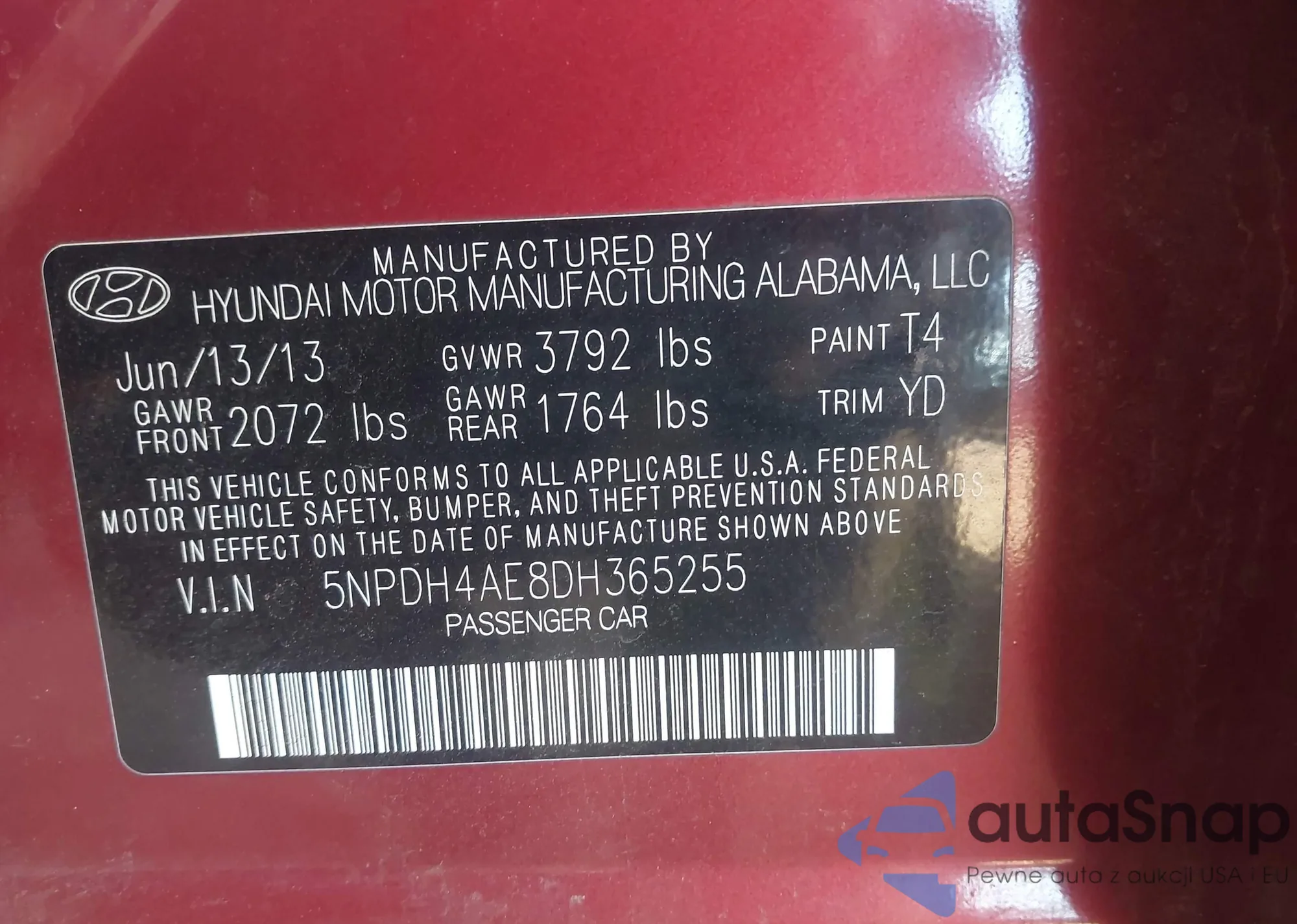• VIN: 5NPDH4AE8DH365255