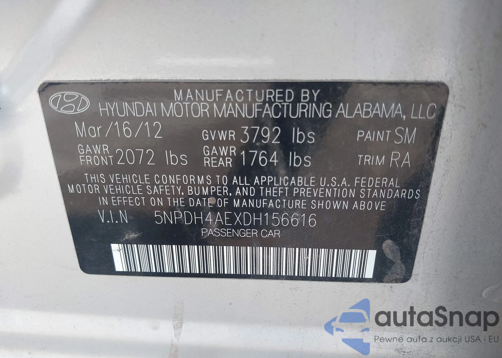 VIN: 5NPDH4AEXDH156616