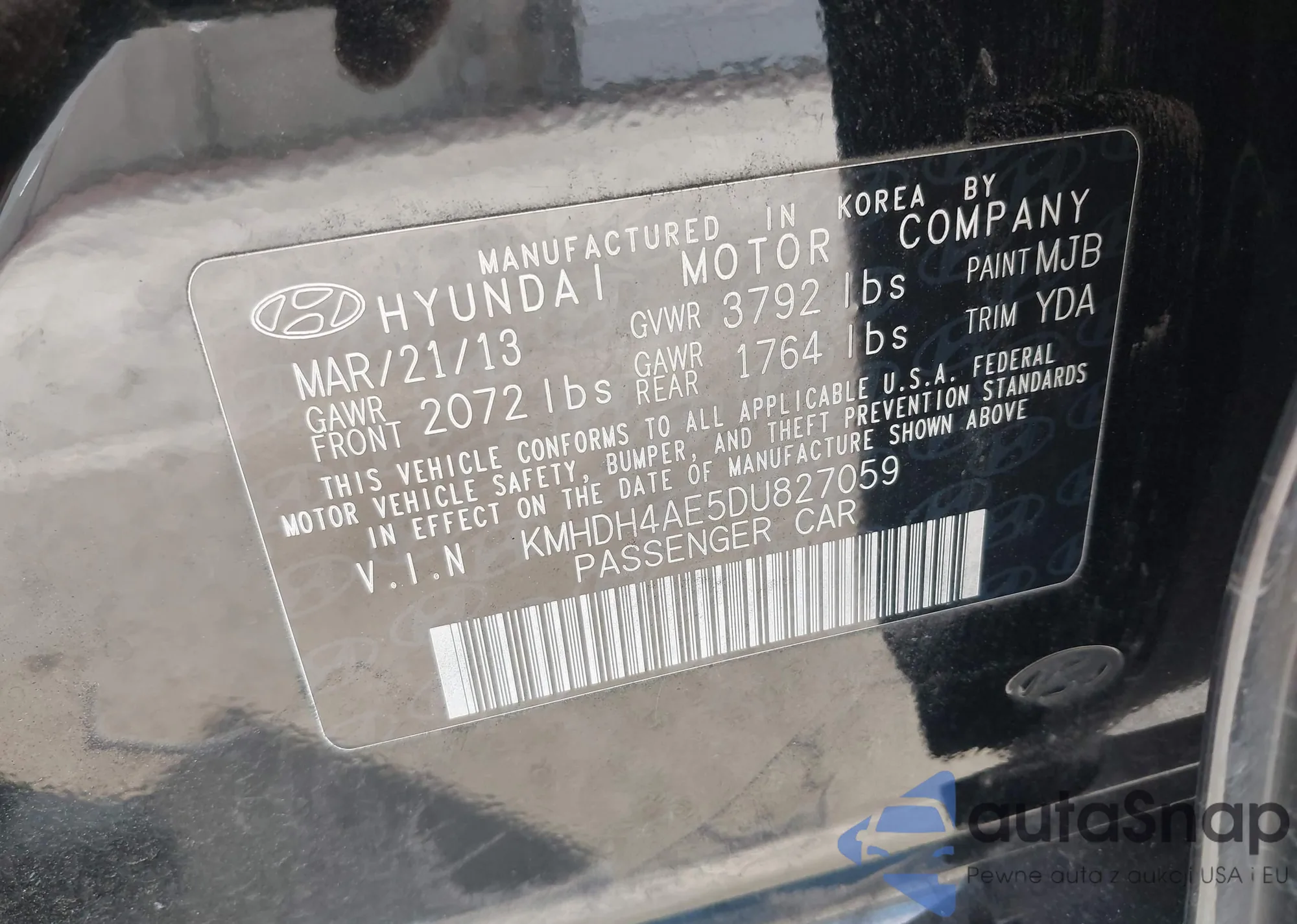VIN: KMHDH4AE5DU827059