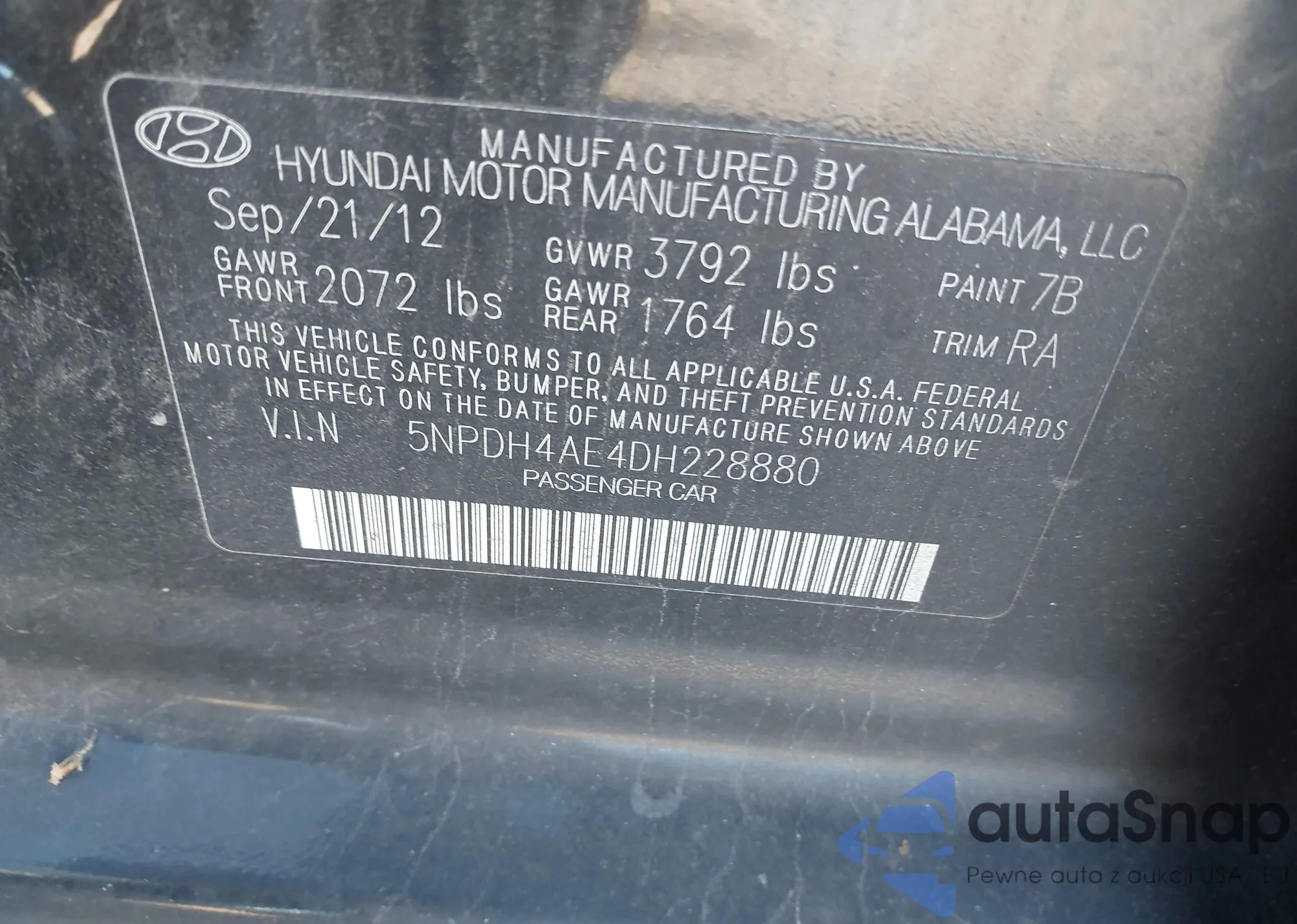 VIN: 5NPDH4AE4DH228880