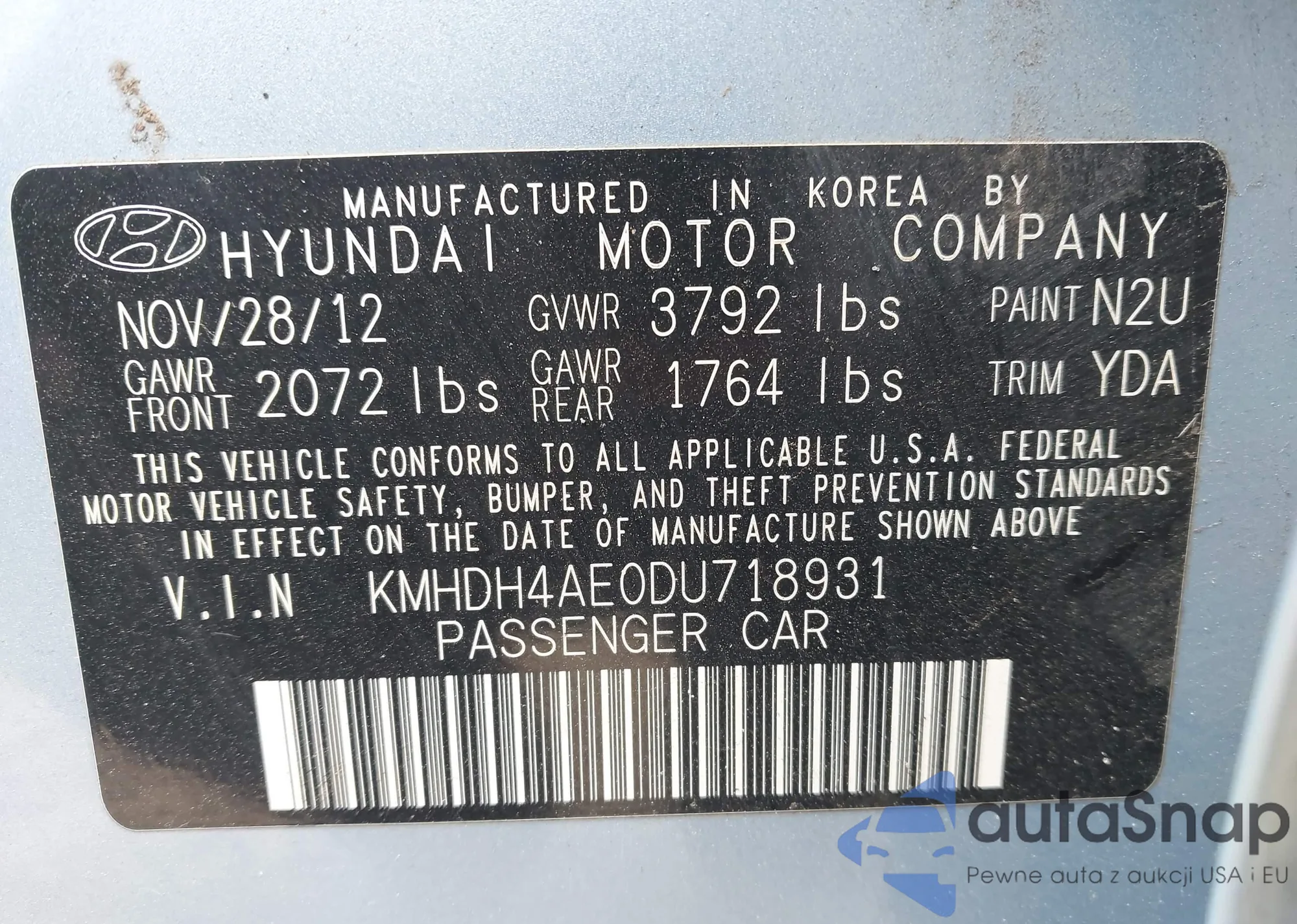 VIN: KMHDH4AE0DU718931