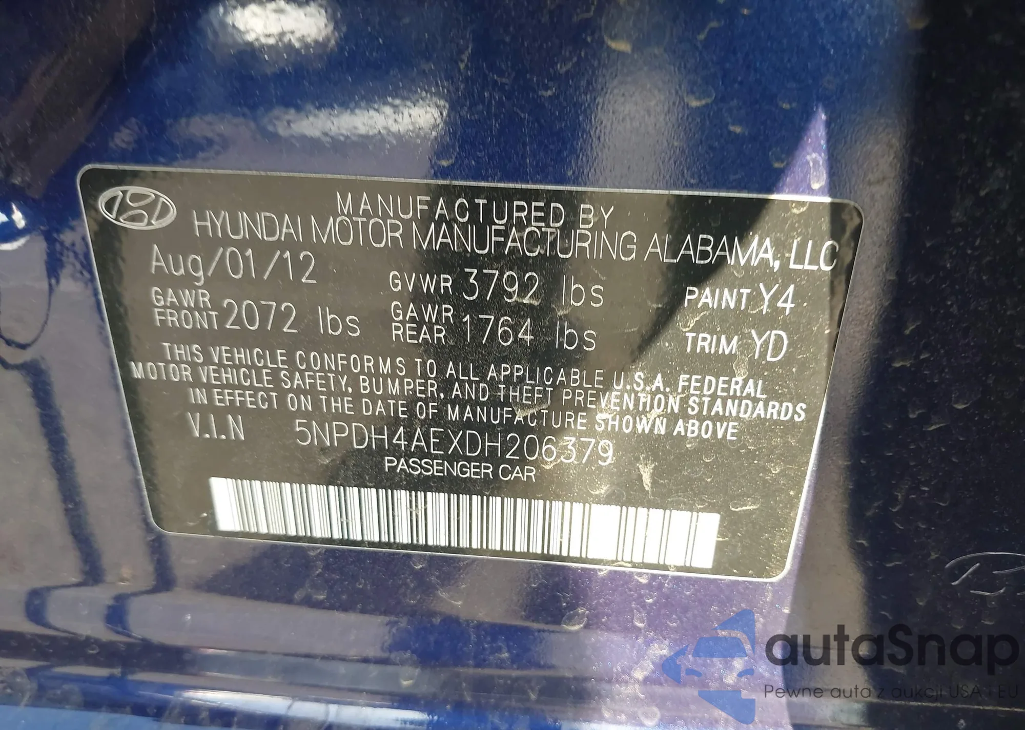 • VIN: 5NPDH4AEXDH206379