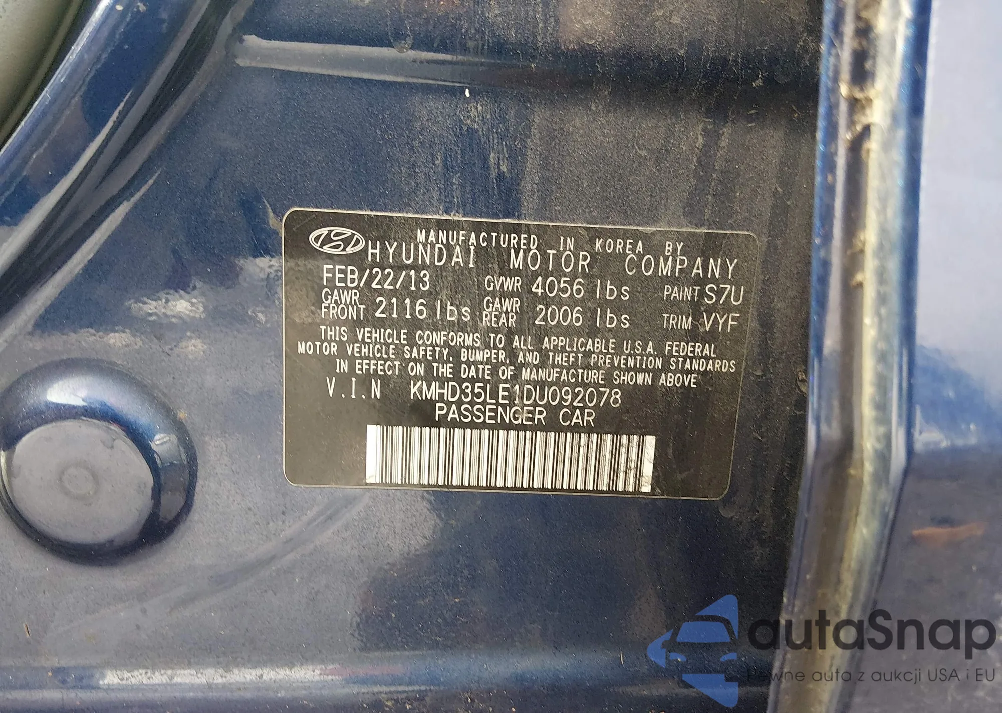 Samochód Hyundai Elantra 2013 (VIN KMHD35LE1DU092078) nie był wcześniej licytowany. Dokumenty są czyste, przebieg odpowiada lub jest niższy niż średnia rynku. Sprzedaje go firma ubezpieczeniowa – polecamy zakup. Dostawa do portu zajmie ok. 6–8 tygodni.