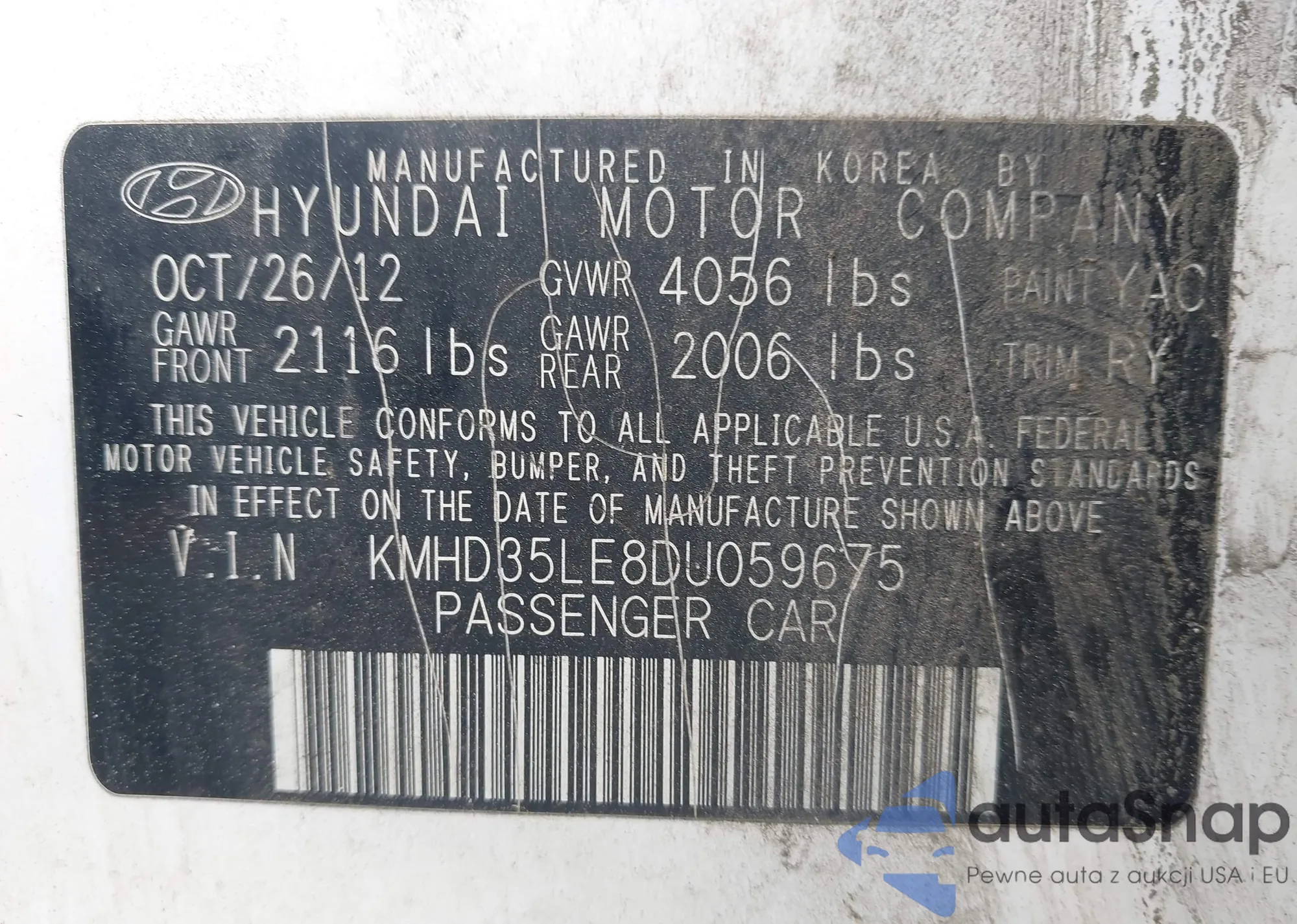 VIN: KMHD35LE8DU059675