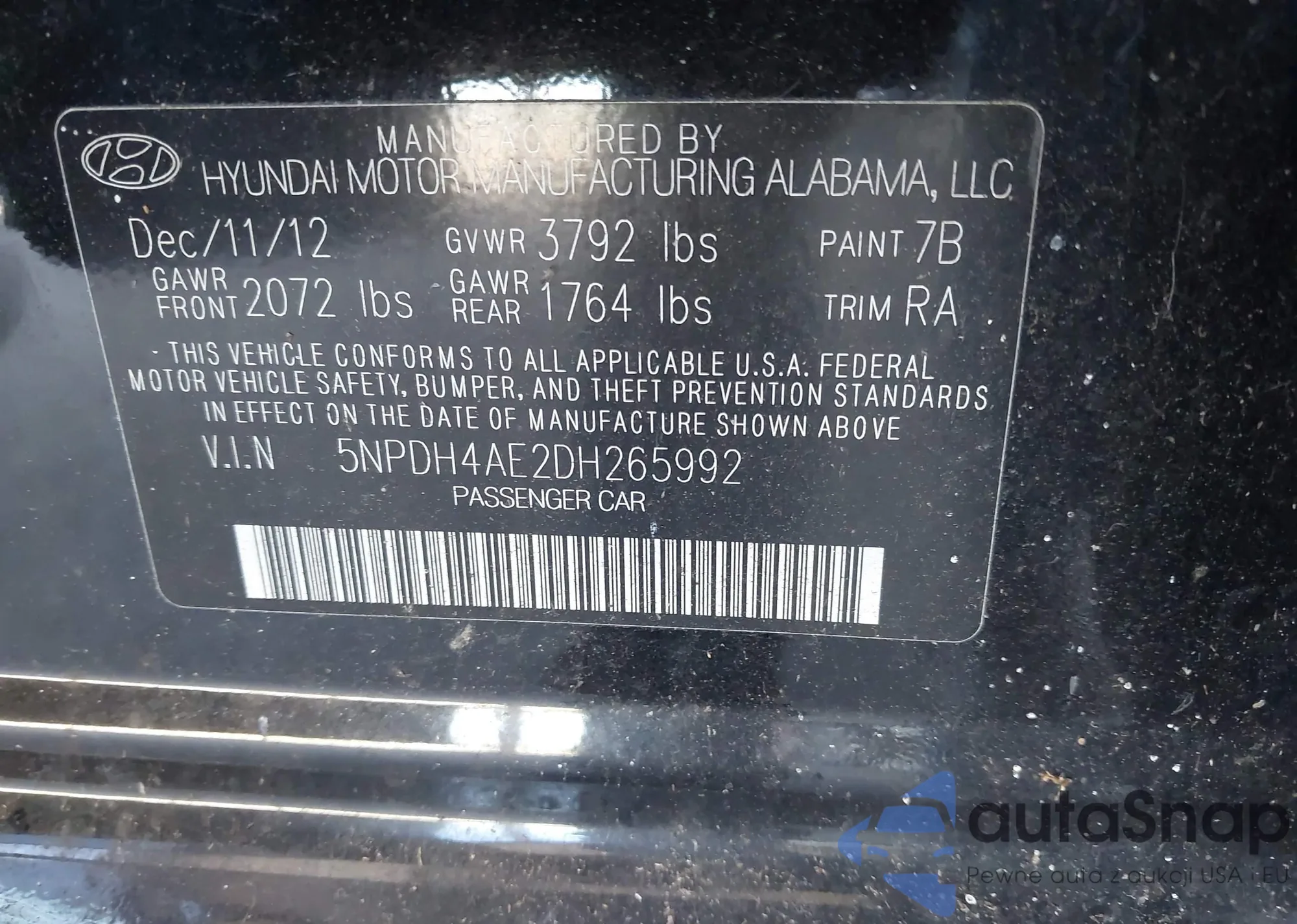 VIN: 5NPDH4AE2DH265992