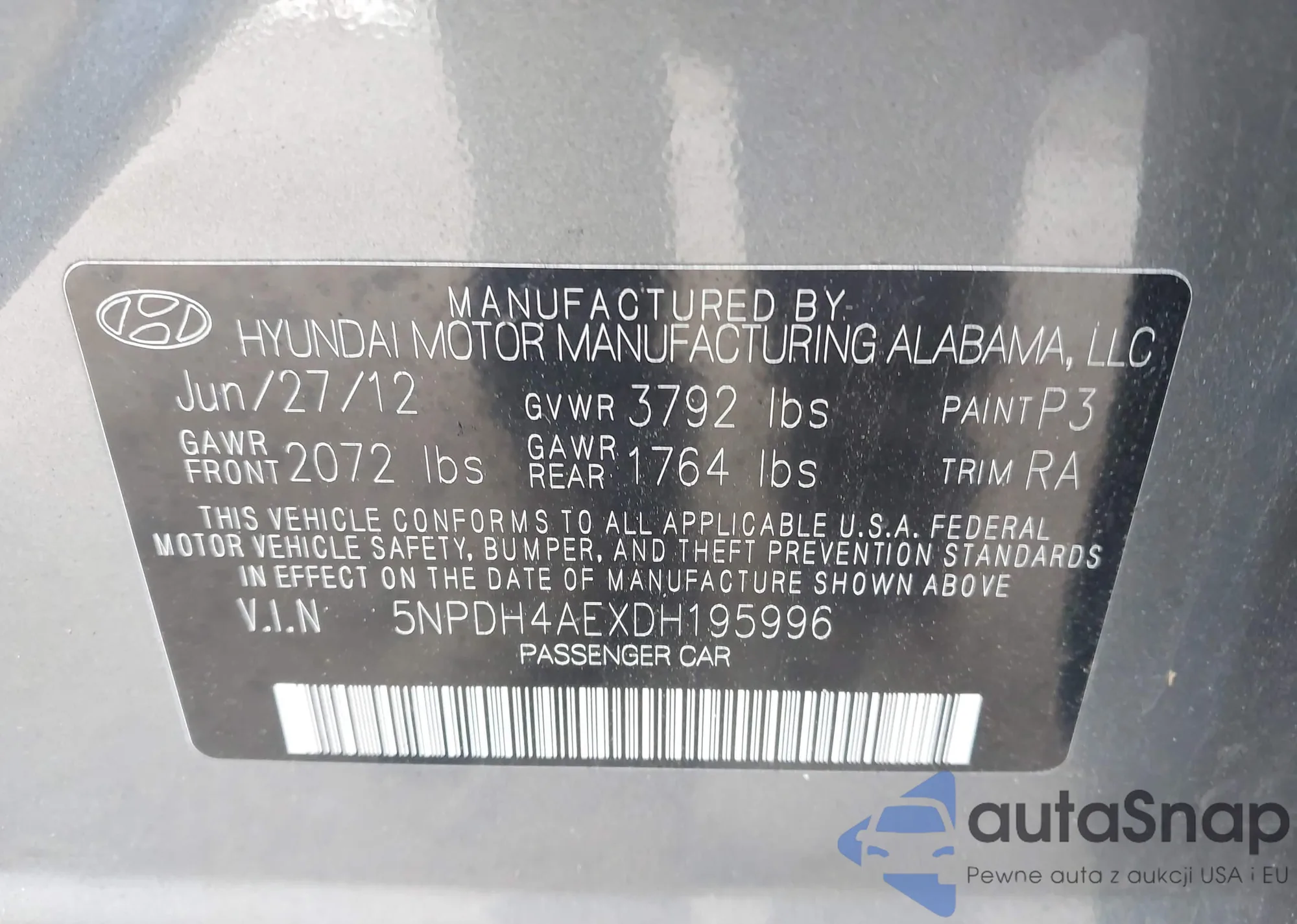 VIN: 5NPDH4AEXDH195996