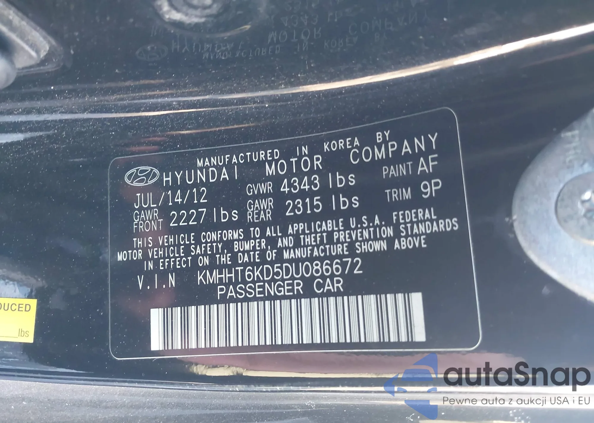 • VIN: KMHHT6KD5DU086672