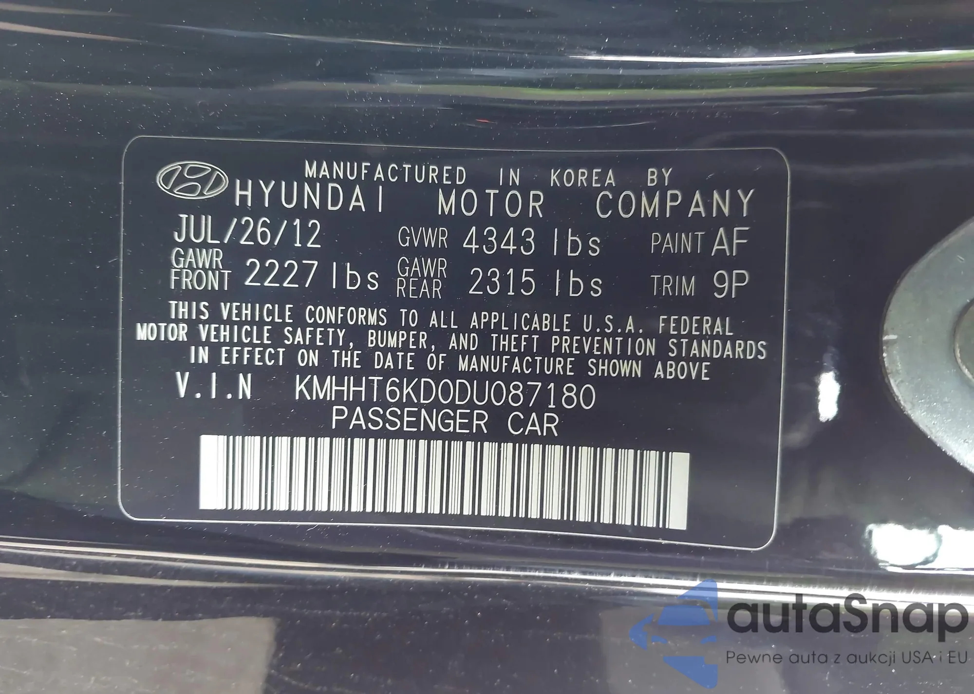 VIN: KMHHT6KD0DU087180
