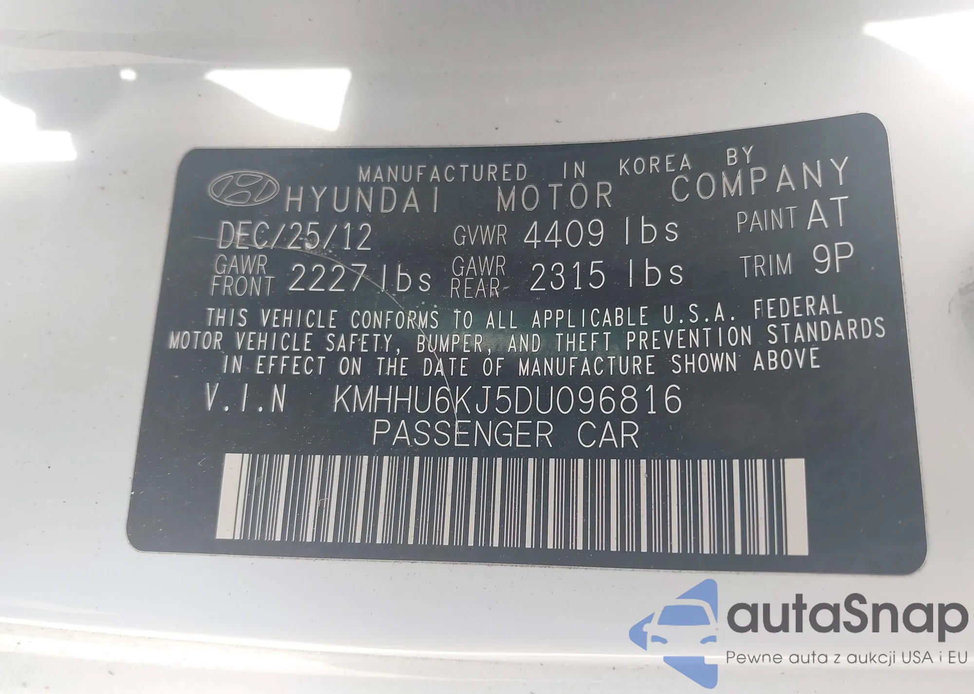 Samochód Hyundai Genesis 2013 (VIN KMHHU6KJ5DU096816) nie był wcześniej licytowany. Dokumenty są czyste, przebieg odpowiada lub jest niższy niż średnia rynku. Sprzedaje go firma ubezpieczeniowa – polecamy zakup. Dostawa do portu zajmie ok. 6–8 tygodni.
