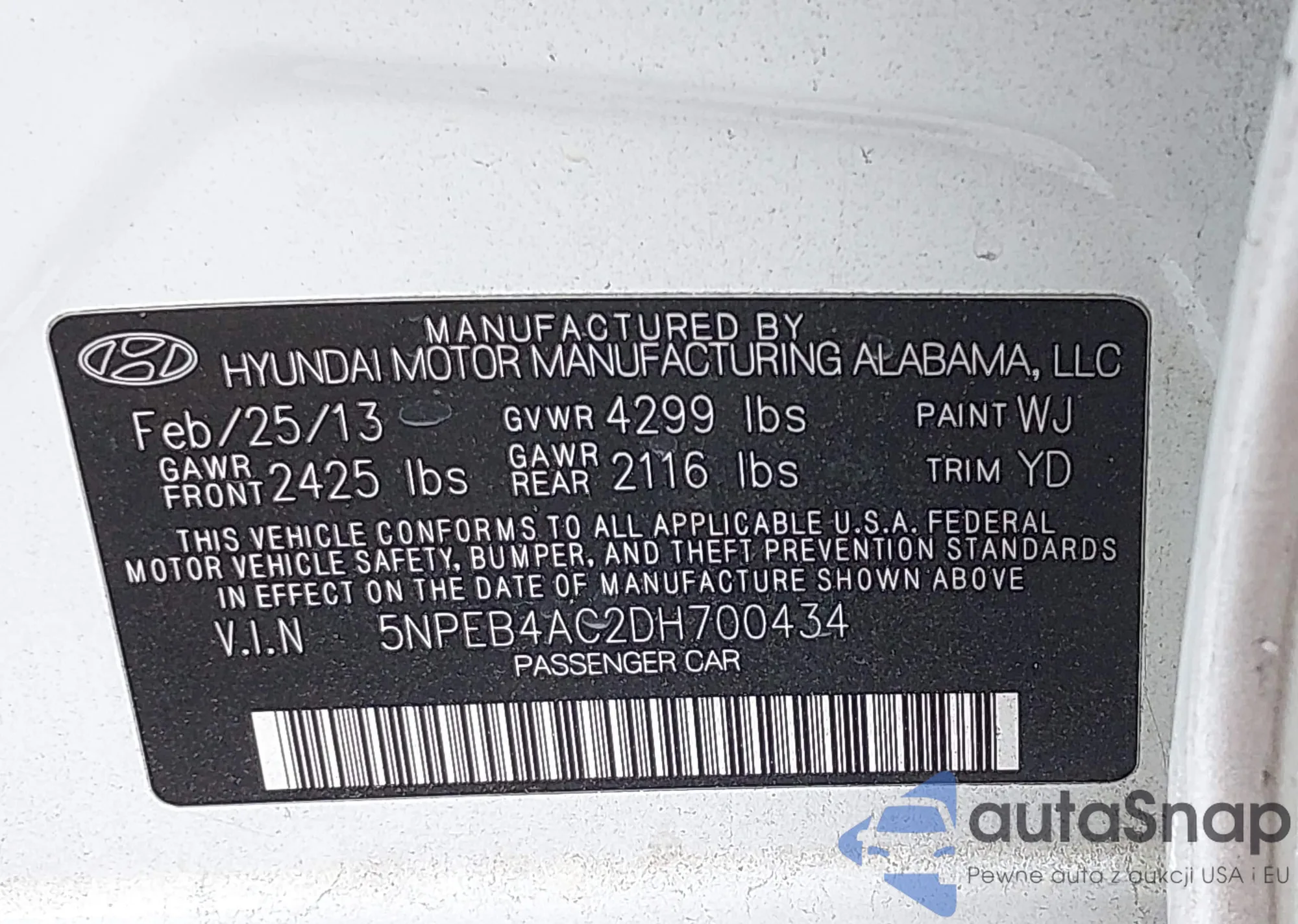 VIN: 5NPEB4AC2DH700434