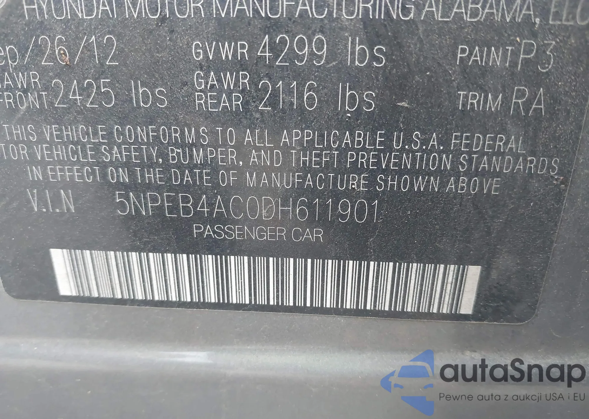 VIN: 5NPEB4AC0DH611901