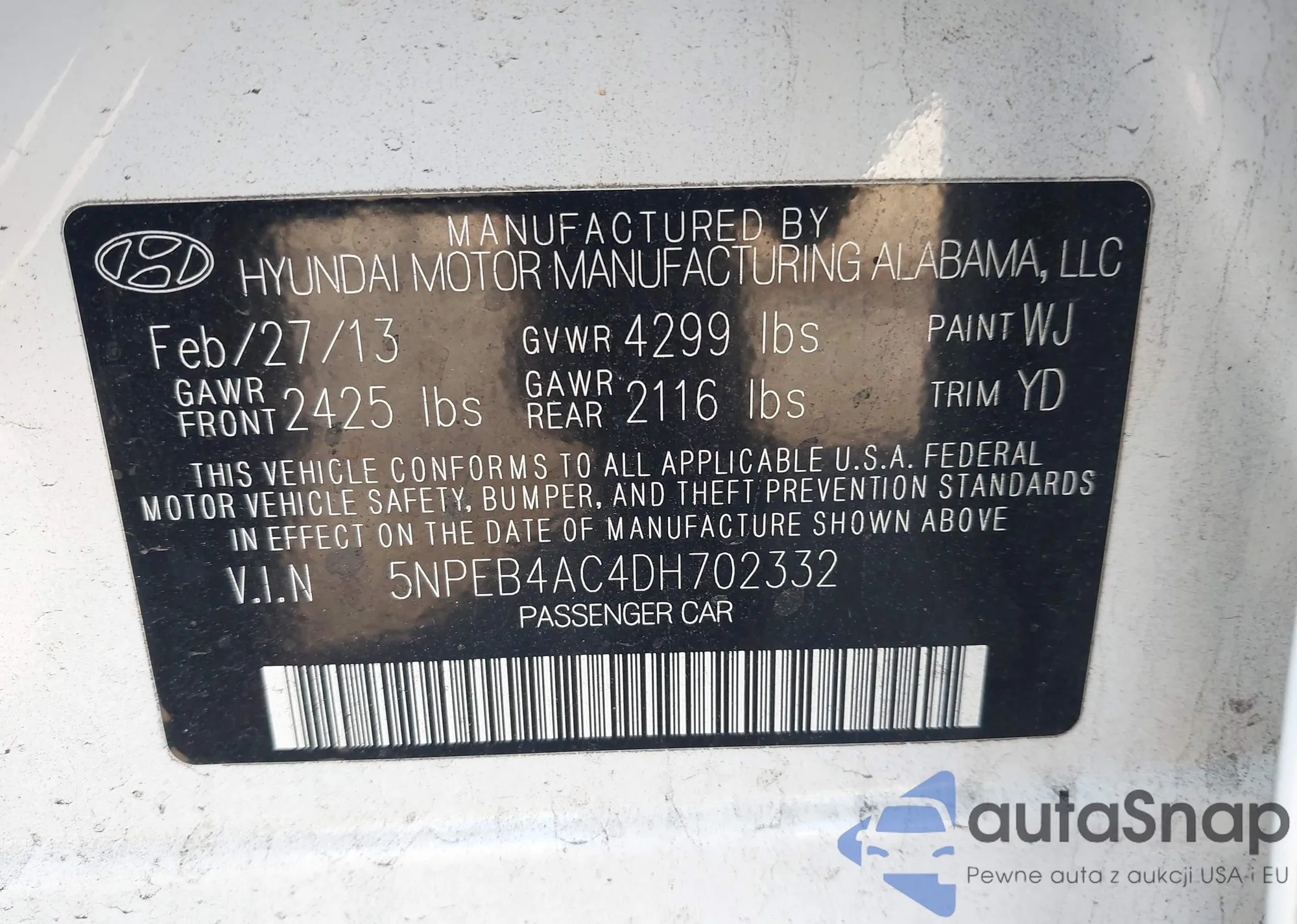 VIN: 5NPEB4AC4DH702332
