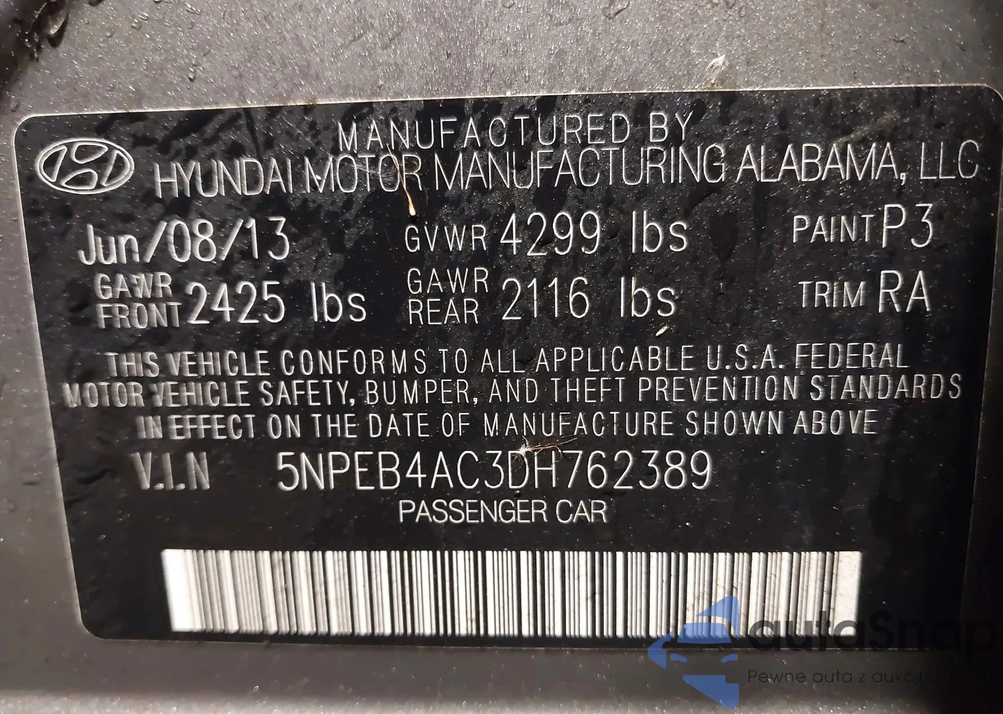 VIN: 5NPEB4AC3DH762389
