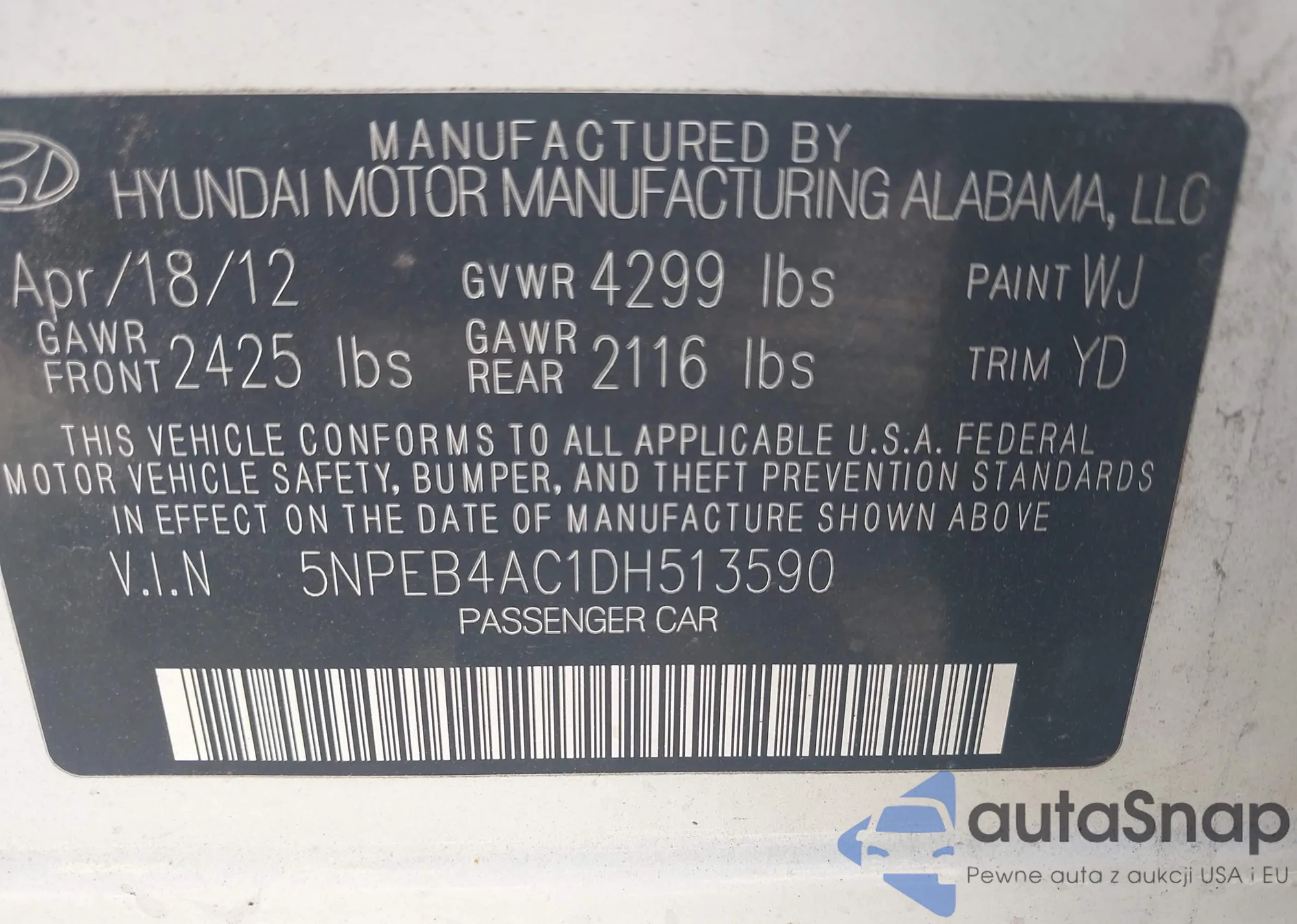 VIN: 5NPEB4AC1DH513590