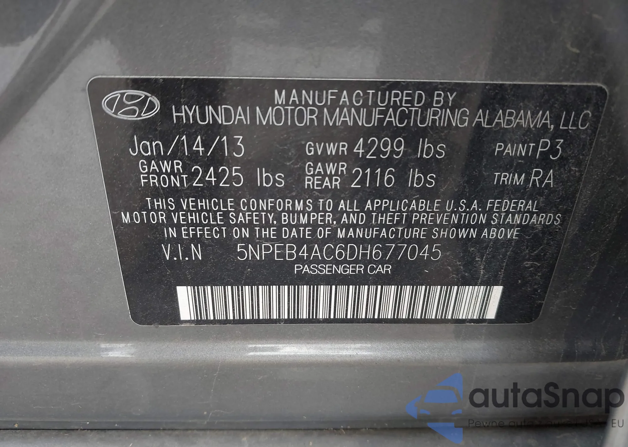 VIN: 5NPEB4AC6DH677045