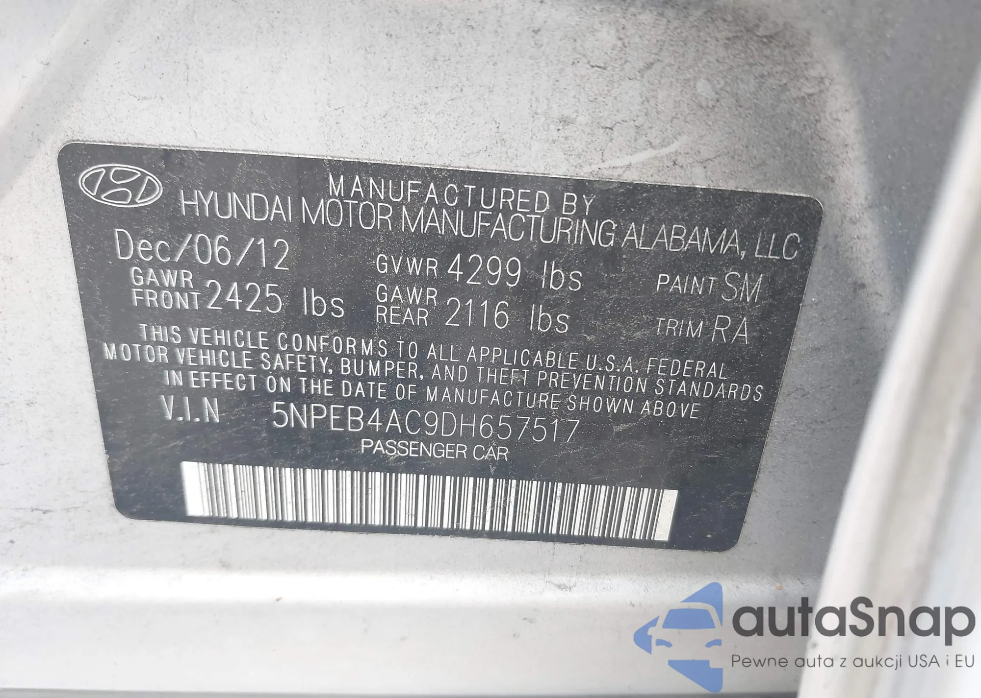 VIN: 5NPEB4AC9DH657517