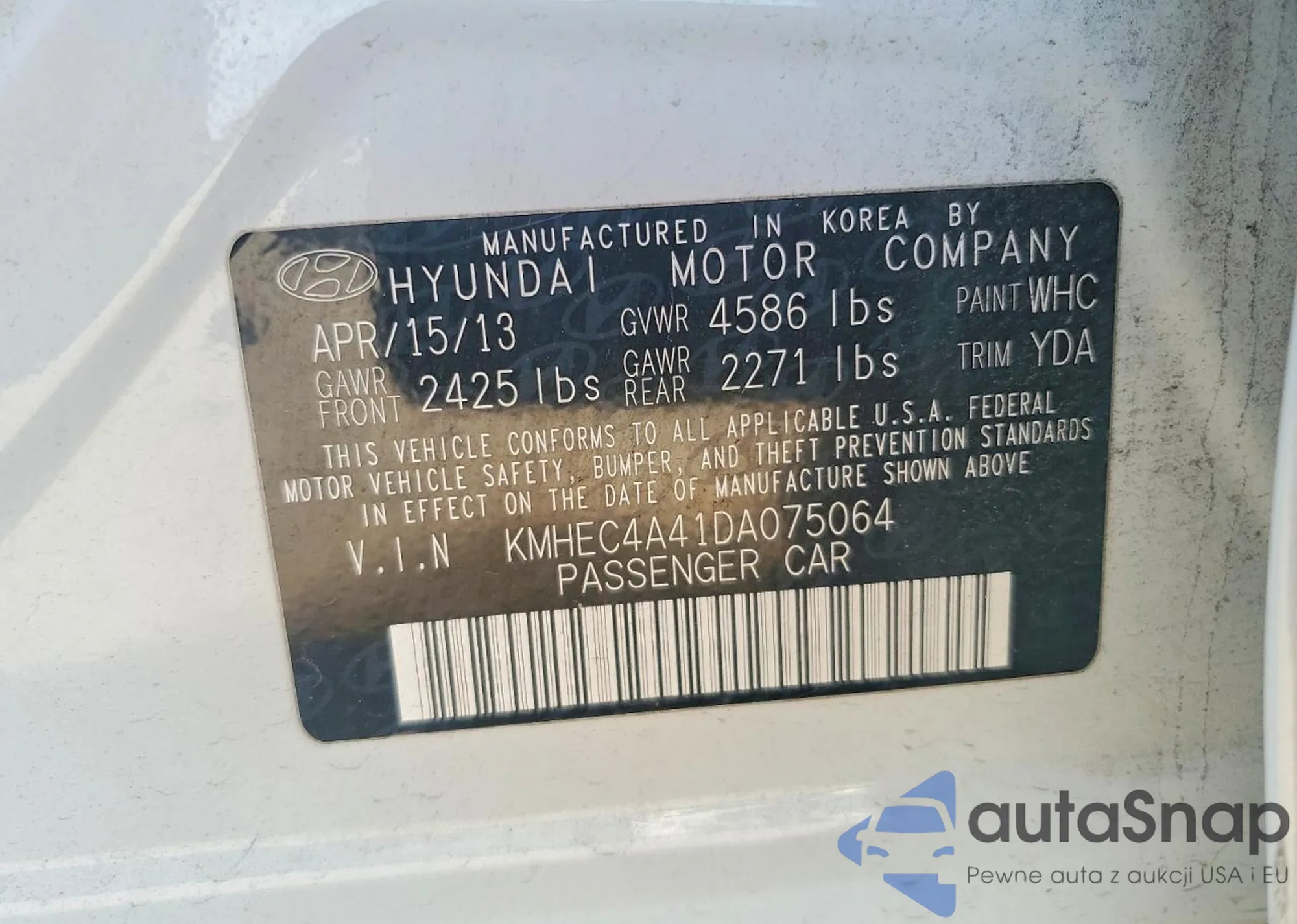 • VIN: KMHEC4A41DA075064