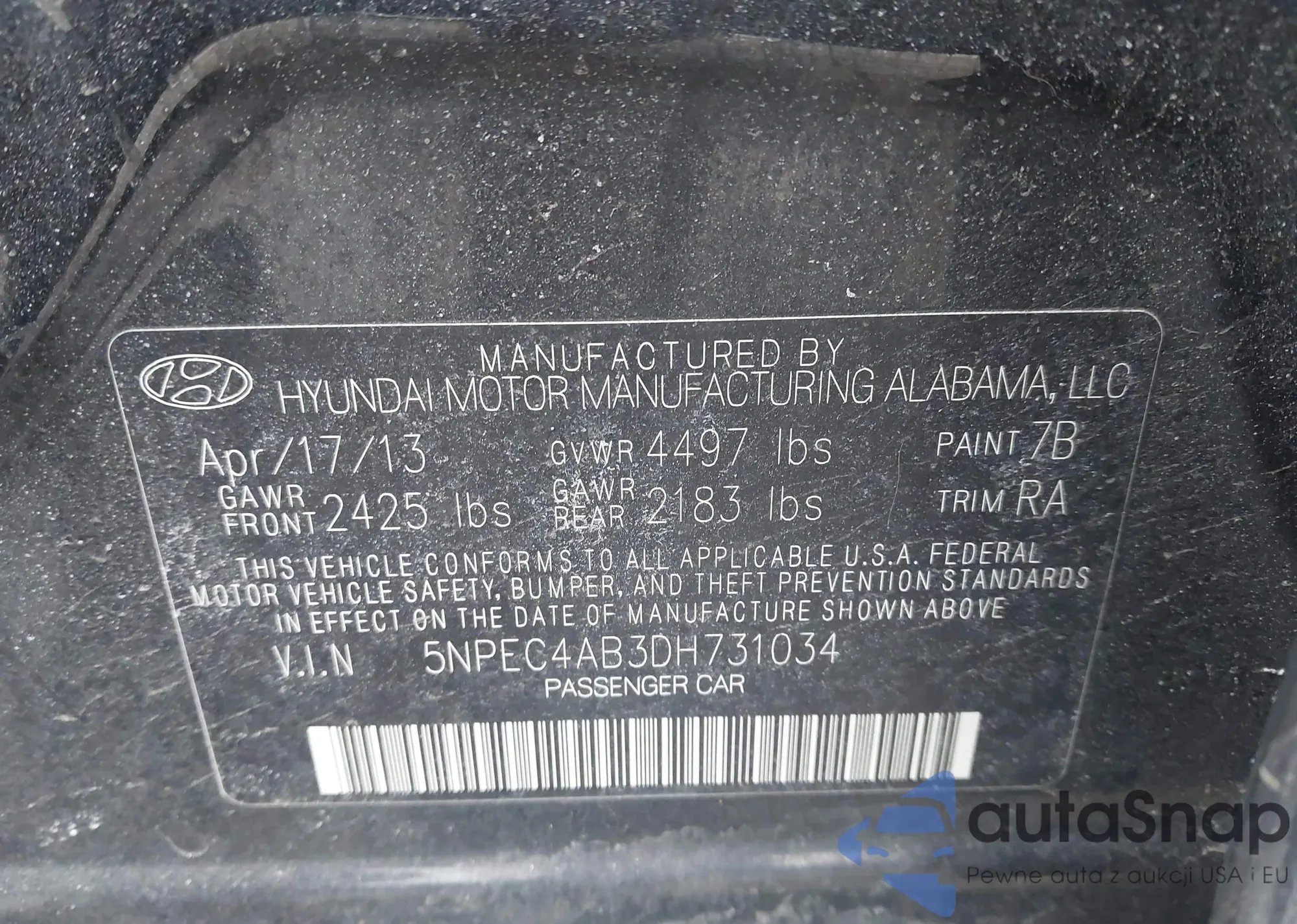 • VIN: 5NPEC4AB3DH731034