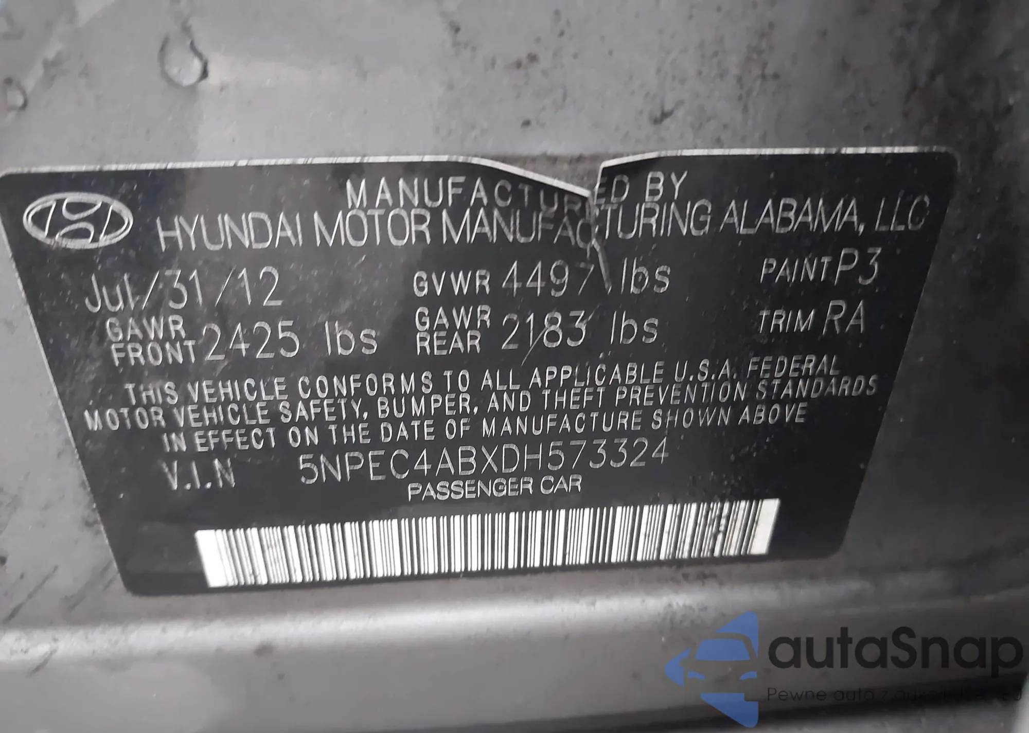 VIN: 5NPEC4ABXDH573324
